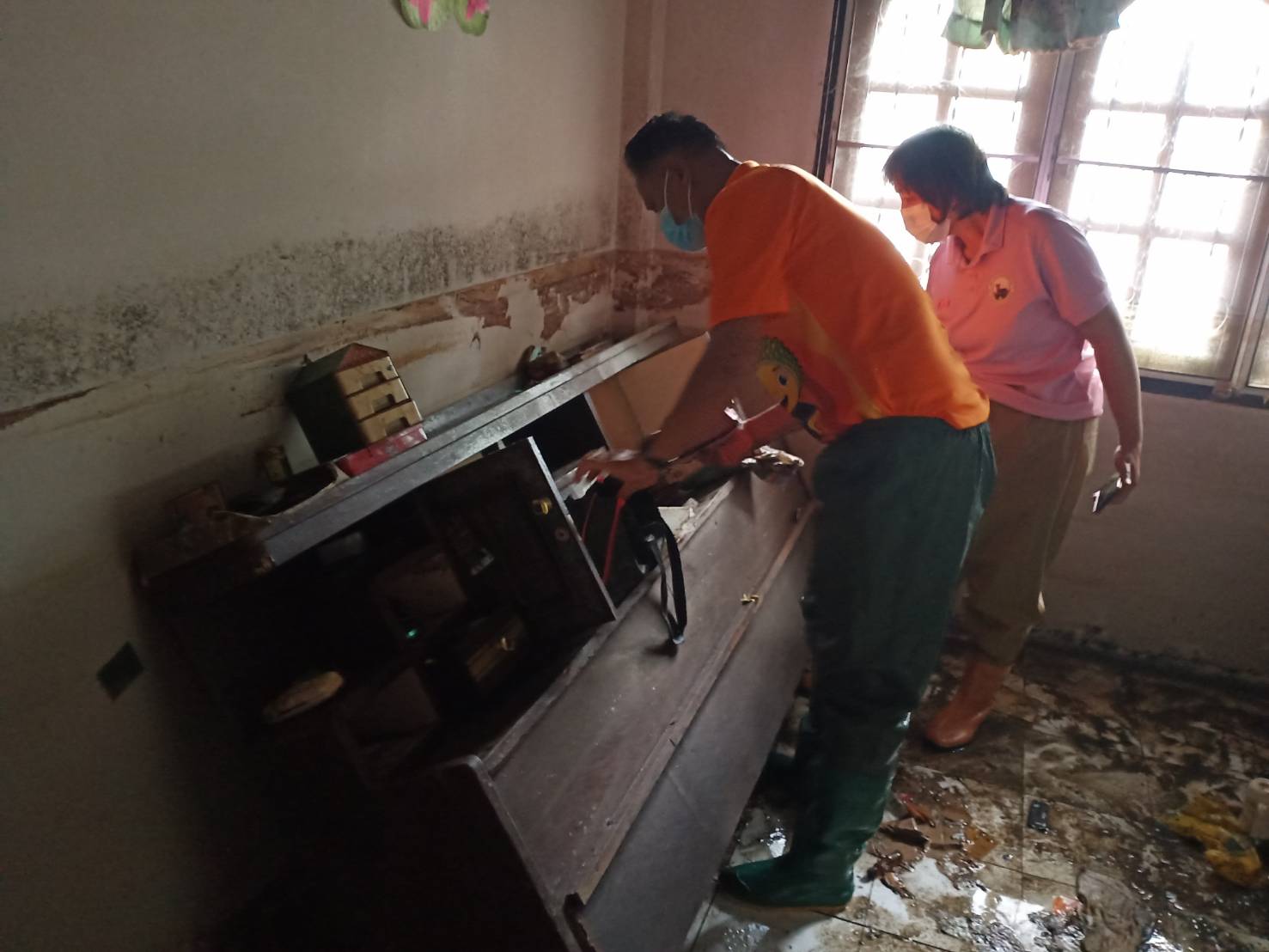 เมื่อเปิดประตูเข้าไป ถึงกับเข่าทรุด จะเป็นลม เมื่อเห็นสภาพบ้านและสิ่งของเครื่องใช้พังเสียหาย ตู้เย็น เครื่องซักผ้า ทีวี ล้มระเนระนาดกับพื้น ไม่มีชิ้นดี ส่งกลิ่นเน่าเหม็น เห็นแล้วรู้สึกหดหู่ เพราะไม่คิดว่าจะท่วมหนักขนาดนี้ คาดว่าความเสียหายที่เกิดขึ้นมูลค่าประมาณ ไม่ต่ำกว่า 500,000 บาท