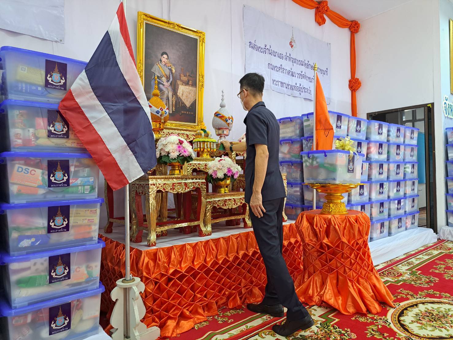 รองปธ.สถาบันวิจัยจุฬาภรณ์เชิญสิ่งของ พระราชทานช่วยเหลือผู้ประสบอุทกภัย