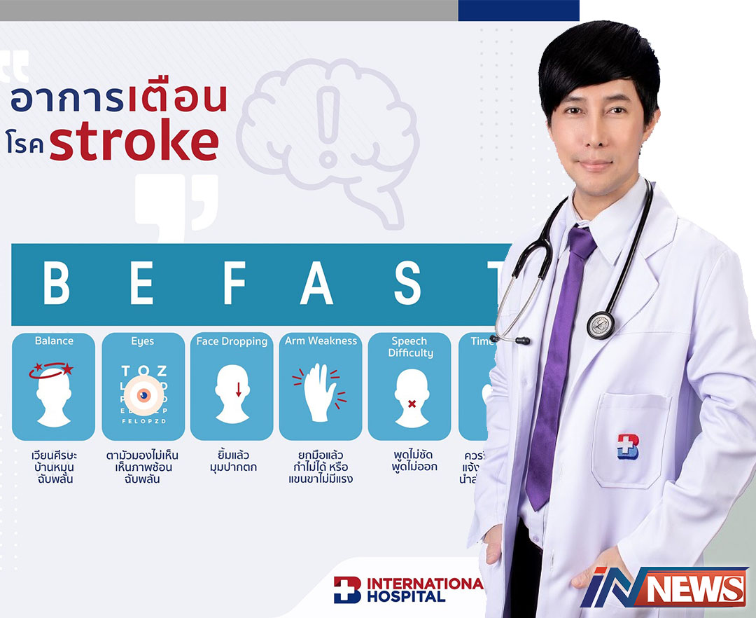 แม้โรคหลอดเลือดสมองมักเกิดขึ้นเฉียบพลัน แต่ก็สามารถสังเกตอาการเตือนได้ตามหลักการ BEFAST รู้ไว ปลอดภัยจากโรคหลอดเลือดสมอง โดย B : Balance : ทรงตัวไม่ได้ เวียนศีรษะ E : Eyes : ตามัวมองไม่เห็น เห็นภาพซ้อน F : Face : ปากเบี้ยว หน้าเบี้ยว ด้านใดด้านหนึ่ง A : Arm : แขนขาอ่อนแรง ด้านใดด้านหนึ่ง S : Speech : พูดติดขัด พูดไม่ชัด นึกคำพูดไม่ออก T : Time : รีบไปโรงพยาบาลให้เร็วที่สุด สิ่งที่ต้องเน้นย้ำและสำคัญอย่างมากเมื่อเกิดโรคหลอดเลือดสมองแล้ว คือ ความรวดเร็วในการเข้ารับการรักษา เมื่อเกิดอาการของโรคผู้ป่วยต้องได้รับยาละลายลิ่มเลือดภายใน 4.5 ชั่วโมง นับจากเริ่มมีอาการ หรือ Stroke Onset และกรณีที่จำเป็นต้องทำการใส่สายสวนเอาก้อนเลือดที่อุดตันออกจากเส้นเลือดสมอง (Endovascular) ภายใน 6 ชั่วโมง ซึ่งจะเห็นได้ว่า เวลาถือเป็นหัวใจสำคัญในการตัดสินความเป็นความตายในการรักษาผู้ป่วยกลุ่มนี้ ก่อนที่สมองจะเสียหายจากการขาดเลือด จึงนับว่าเป็นช่วงเวลาที่มีค่าที่สุดสำหรับผู้ป่วยโรคหลอดเลือดสมอง
