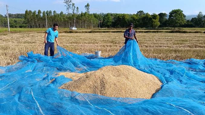 จึงลงพื้นที่ตรวจสอบ พบกองข้าวเปลือกกองไว้ มีรอยจุดไฟรอบกองข้าวเปลือก เพื่อป้องกันช้างมากินข้าวเปลือก และพบร่องรอยช้างกินข้าวเปลือก ไปจำนวนหนึ่ง
