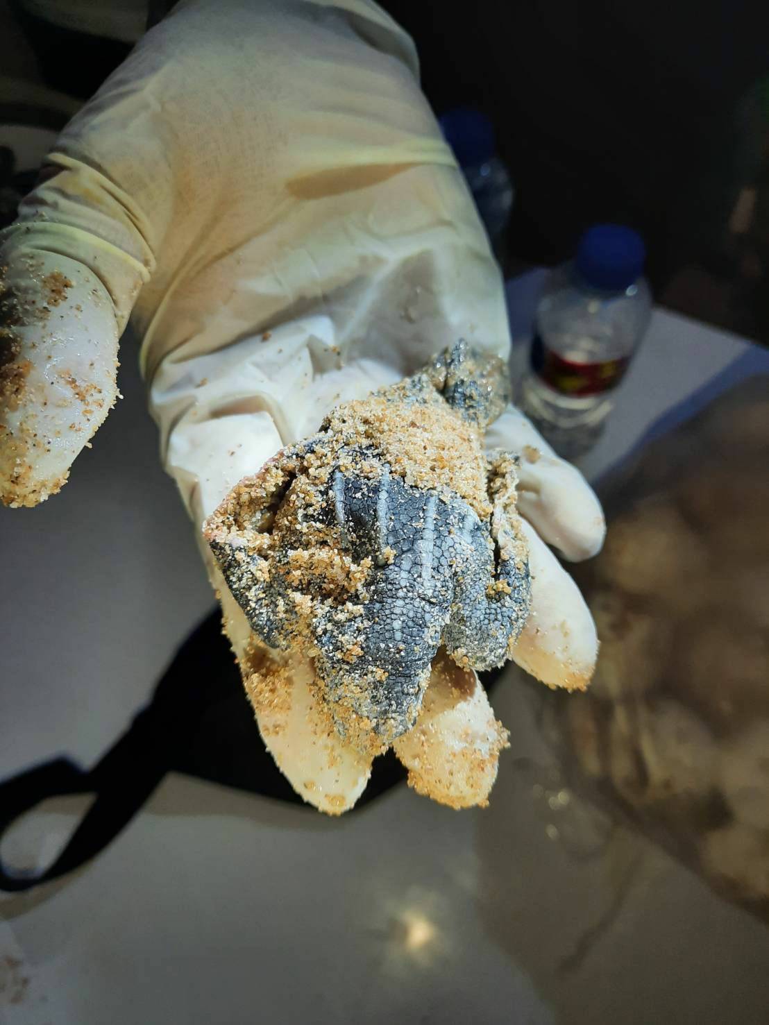 ฮือฮา!ลูกเต่ามะเฟืองรัง5ลืมตาดูโลกแล้ว จนท.ทรัพยากรทางทะเลจับปล่อยคืนทะเล