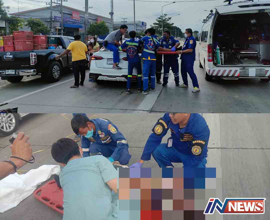 กาญจนบุรี-เคราะห์ร้าย !! หนุ่มบางตาเถร 2 พี่น้อง สุพรรณฯ ควบรถจักรยานยนต์ชนกับรถยนต์เก๋งนิสสันอาเมร่าเสียชีวิตที่กาญจน์