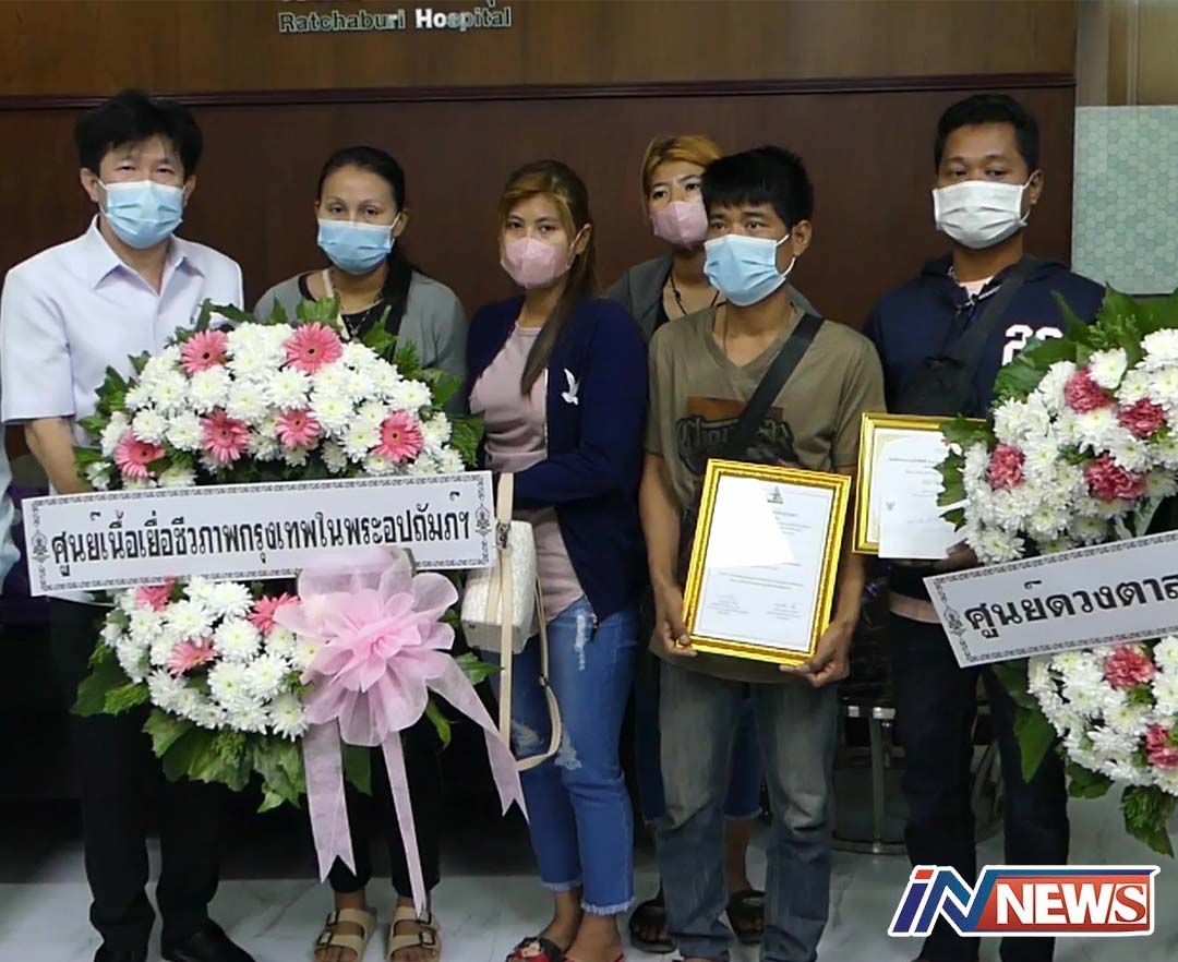 เมื่อวันที่ 3 ม.ค.66 ที่หน้าห้องประชุม รพ.ราชบุรี นพ.อนุกูล ไทยถานันดร์ ผอ.รพ.ราชบุรี พร้อมคณะแพทย์ และพยาบาล รพ.ราชบุรี ได้ร่วมกันมอบใบประกาศเกียรติคุณยกย่อง THANT ZIN TUN หรือ นายซิน อายุ 29 ปี สัญชาติพม่า ผู้วายชนม์ พร้อม Thet.Thetmon หรือ นางต้าหมู อายุ 29 ปี ภรรยาผู้เสียชีวิต และครอบครัวของผู้วายชนม์ หลังได้บริจาคอวัยวะ เป็นดวงตา 2 ข้าง และกระดูกเนื้อเยื้อ 11 ชิ้น ให้กับสภากาชาดไทย และศูนย์เนื้อเยื่อชีวภาพกรุงเทพฯ ในพระอุปถัมภ์ฯ