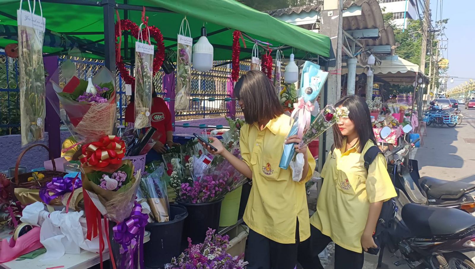 ซึ่งปีนี้รู้สึกว่าคึกคักกว่าปีที่ผ่านมา เนื่องจากมียอดสั่งเข้ามาให้ทางร้านทำเป็นช่อไว้ให้โดยจะมารับอีกครั้งหลังเลิกงานเป็นจำนวนมาก ขณะที่นักเรียนบางส่วนก็ได้มีการมาเลือกและสั่งซื้อกับแม่ค้าร้าดอกไม้ไว้แล้วในบางส่วนโดยจะคึกคักก็ช่วงเลิกเรียน หรือเลิกงานน่าจะมีลูกค้าเลือกซื้อกันเป็นจำนวนกว่าปีที่ผ่ามาแน่นอนดูจากยอดสั่งซื้อในเช้าวันนี้