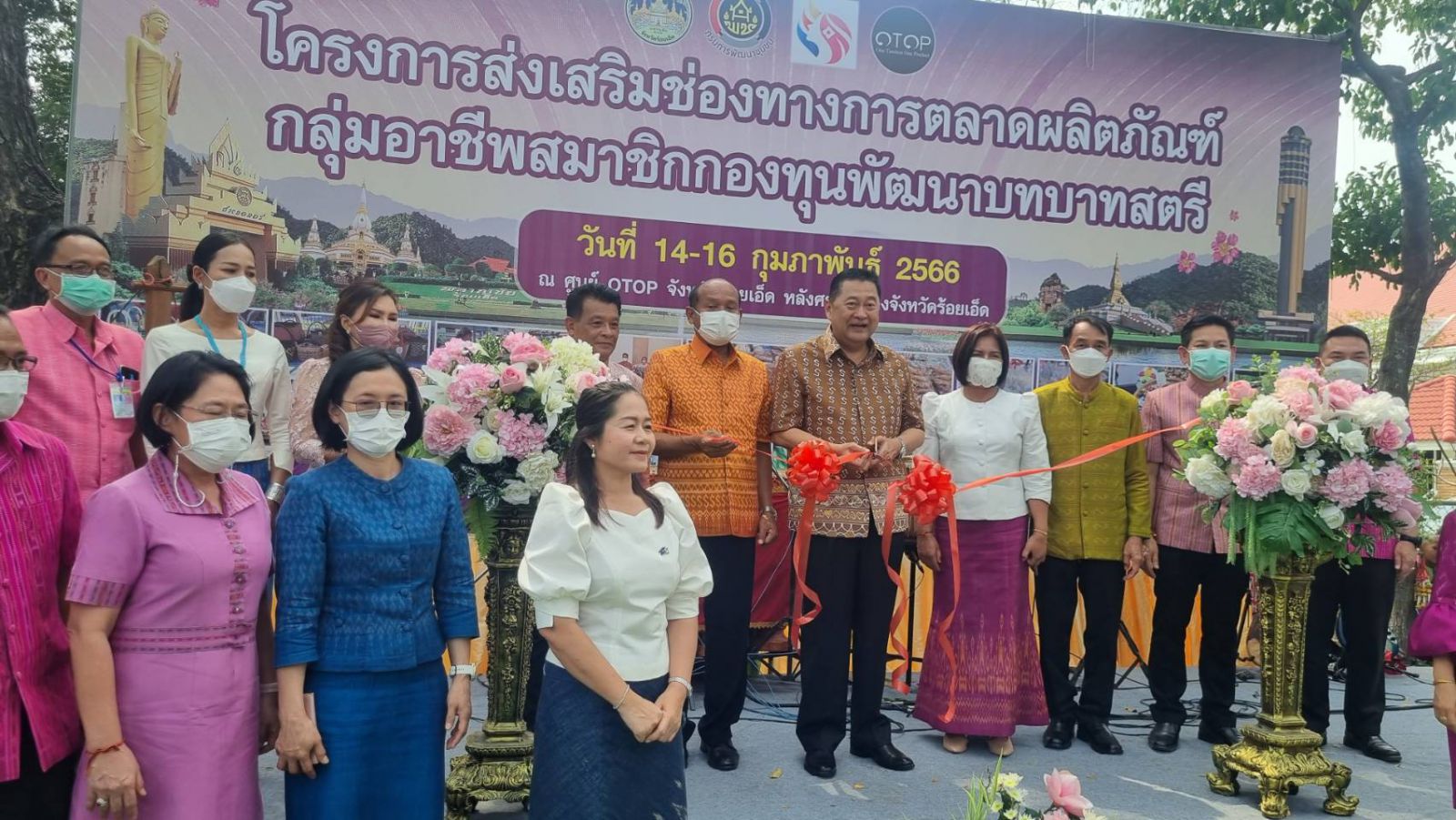 วันอังคารที่ 14 กุมภาพันธ์ 2566 เวลา 10.30 น. นายทรงพล ใจกริ่ม ผู้ว่าราชการจังหวัดร้อยเอ็ด เป็นประธานเปิดโครงการส่งเสริมช่องทางการตลาดผลิตภัณฑ์กลุ่มอาชีพและสมาชิกกองทุนพัฒนาบทบาทสตรี ณ บริเวณศูนย์แสดงและจำหน่ายสินค้า OTOP จังหวัดร้อยเอ็ด (หลังศาลากลางจังหวัดร้อยเอ็ด) โดยมี นายชูศักดิ์ ราชบุรี ปลัดจังหวัดร้อยเอ็ด นายไพโรจ จิตจักร์ ปลัดจังหวัดร้อยเอ็ด นายพิชัยยา ตุระซอง หัวหน้าสำนักงานจังหวัดร้อยเอ็ด นายพิศ นันทพูนพิพัฒน์ พัฒนาการจังหวัดร้อยเอ็ด พร้อมด้วย หัวหน้าส่วนราชการ กลุ่มกองทุนพัฒนาบทบาทสตรี และประชาชน เข้าร่วม
