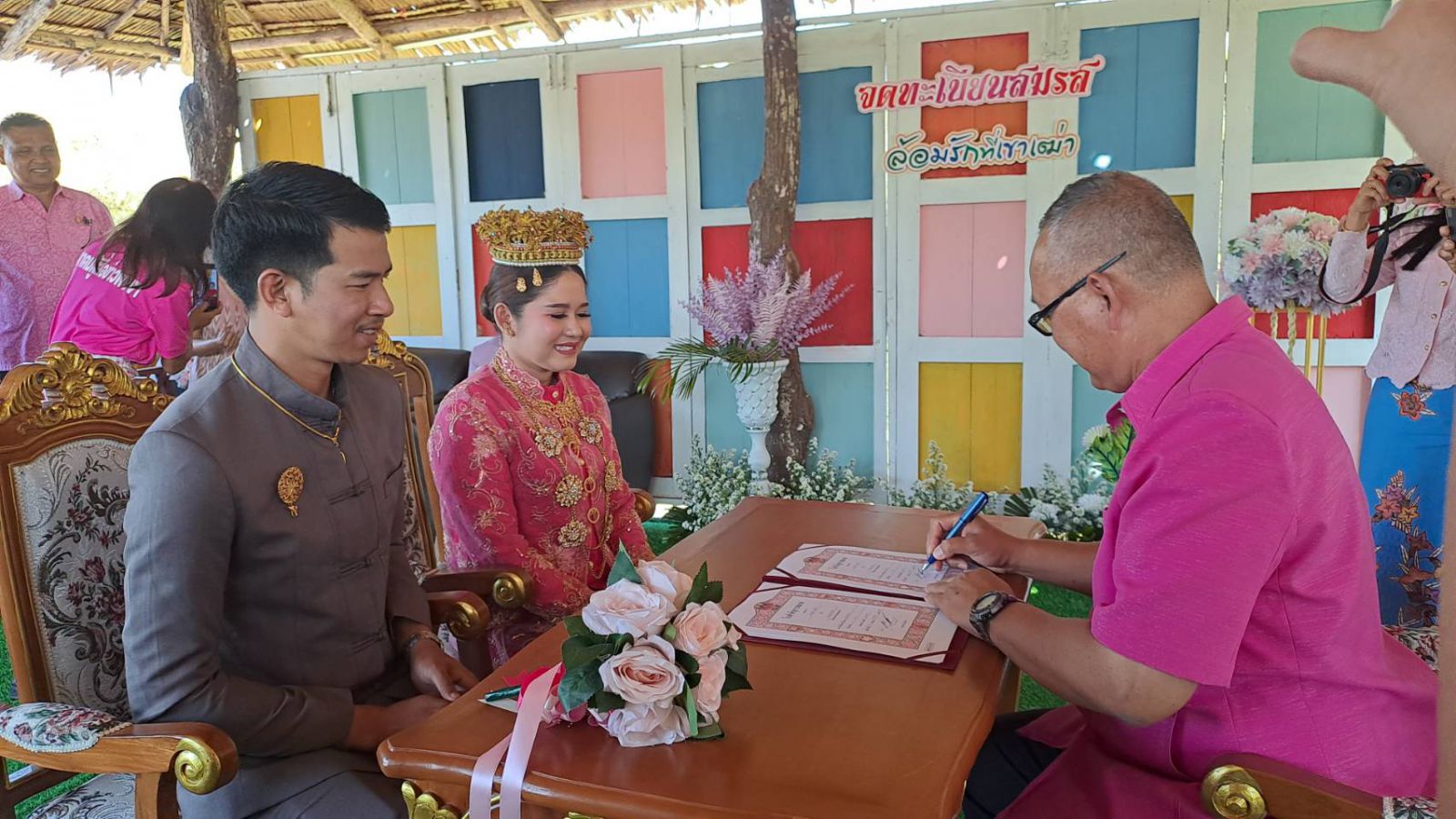 พังงา-ณ โรงเรียนบ้านเขาเฒ่า รองผู้ว่าราชการจังหวัดพังงา เป็นประธานในพิธีเปิดโครงการจดทะเบียนสมรสนอกสถานที่ ภายใต้ชื่อ “ล้อมรักที่เขาเฒ่า” ประจำปี พ.ศ. 2566 วันแห่งความรัก 14 กุมภา 2566 ที่พังงาบรรยากาศสุดหวาน 5 คู่รัก ควงแขนจดทะเบียนสมรส ขื่นมื่น
