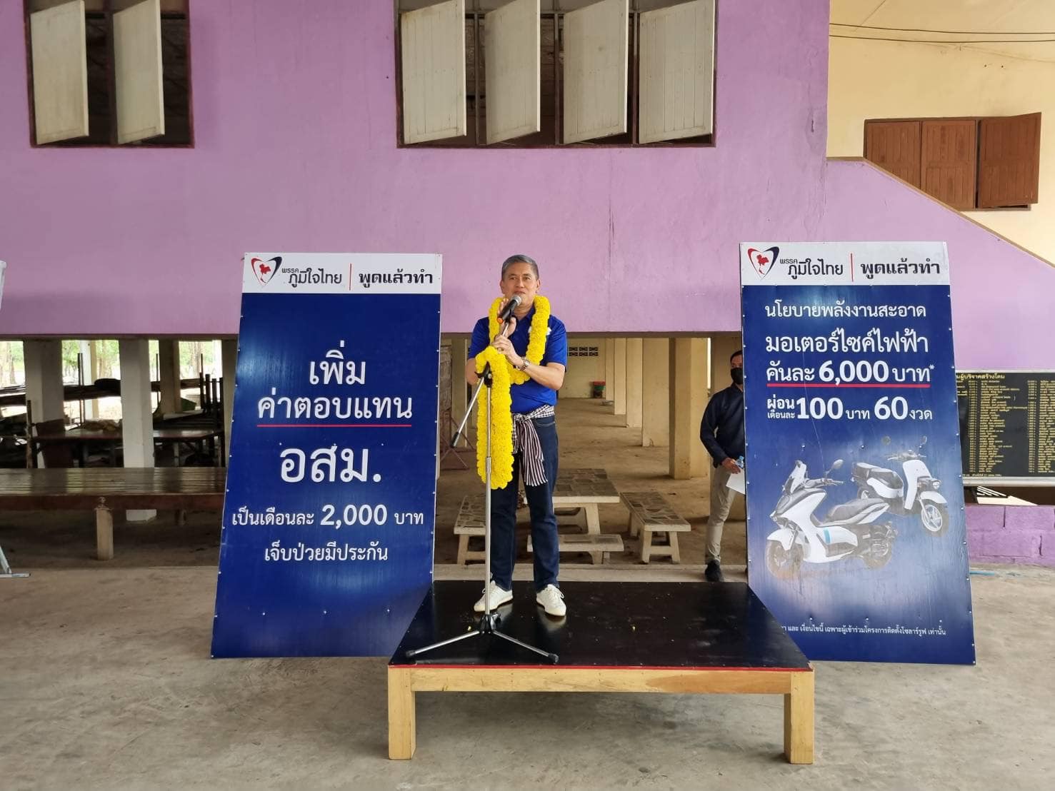 และ กล่าวต่อไปว่า ขอเรียนว่า ตนเองนั้น สังกัดพรรคภูมิใจไทย แต่ว่า ในทางกฎหมายนั้น จะสนับสนุนใครออกหน้าออกตานั้นไม่ได้ ผิดกฎหมาย แต่ก็รู้กันว่าเราอยู่ภูมิใจไทย และ เป็นที่รู้กันว่า ทุกครั้งนั้นพรรคภูมิใจไทยนั้น ชนะการเลือกตั้ง สส.ยกจังหวัดปราจีนฯ ทุกครั้ง ที่มีการเลือกตั้ง