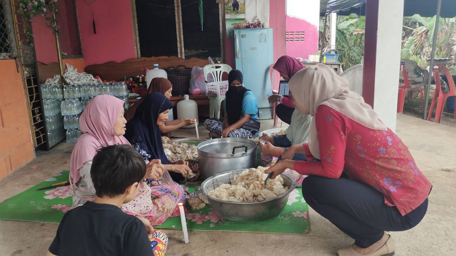 กระบี่-ที่บ้านของนายจรีย์ บรรยากาศ เลี้ยงน้ำชา หาเงินไถ่ถอนบ้านญาติเหยื่อในคดีฆ่าล้างครัว 8 ศพ ที่จ.กระบี่ คึกคัก