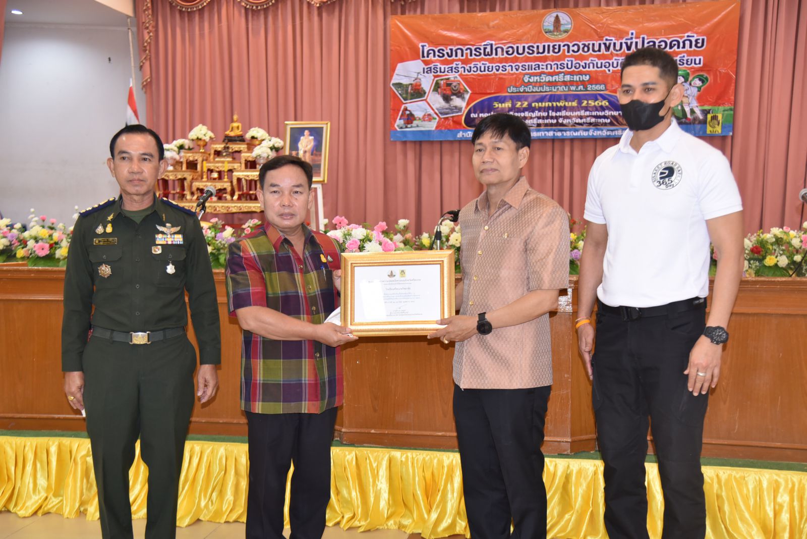 เข้าร่วมโครงการฝึกอบรมเยาวชนขับขี่ปลอดภัยเสริมสร้างวินัยจราจรและการป้องกันอุบัติภัยในโรงเรียนจังหวัดศรีสะเกษ รุ่นที่ 2 ทั้งนี้เพื่อให้ผู้ผ่านการฝึกอบรมเกิดจิตสำนึกในด้านความปลอดภัยมีวินัยในการขับขี่รถจักรยานยนต์เพิ่มขึ้นสามารถปรับเปลี่ยนพฤติกรรมการขับขี่ให้ปฏิบัติตามกฎหมายทั้งผู้ขับขี่และผู้ซ้อนท้าย เพื่อให้ผู้ผ่านการฝึกอบรมสามารถนำความรู้ที่ได้รับกลับไปใช้เพื่อเป็นความรู้ในการสอบใบอนุญาตขับขี่ และเพื่อให้ผู้ผ่านการฝึกอบรมส-มารถป้องกันและระงับอุบัติภัยในโรงเรียนได้ต่อไป