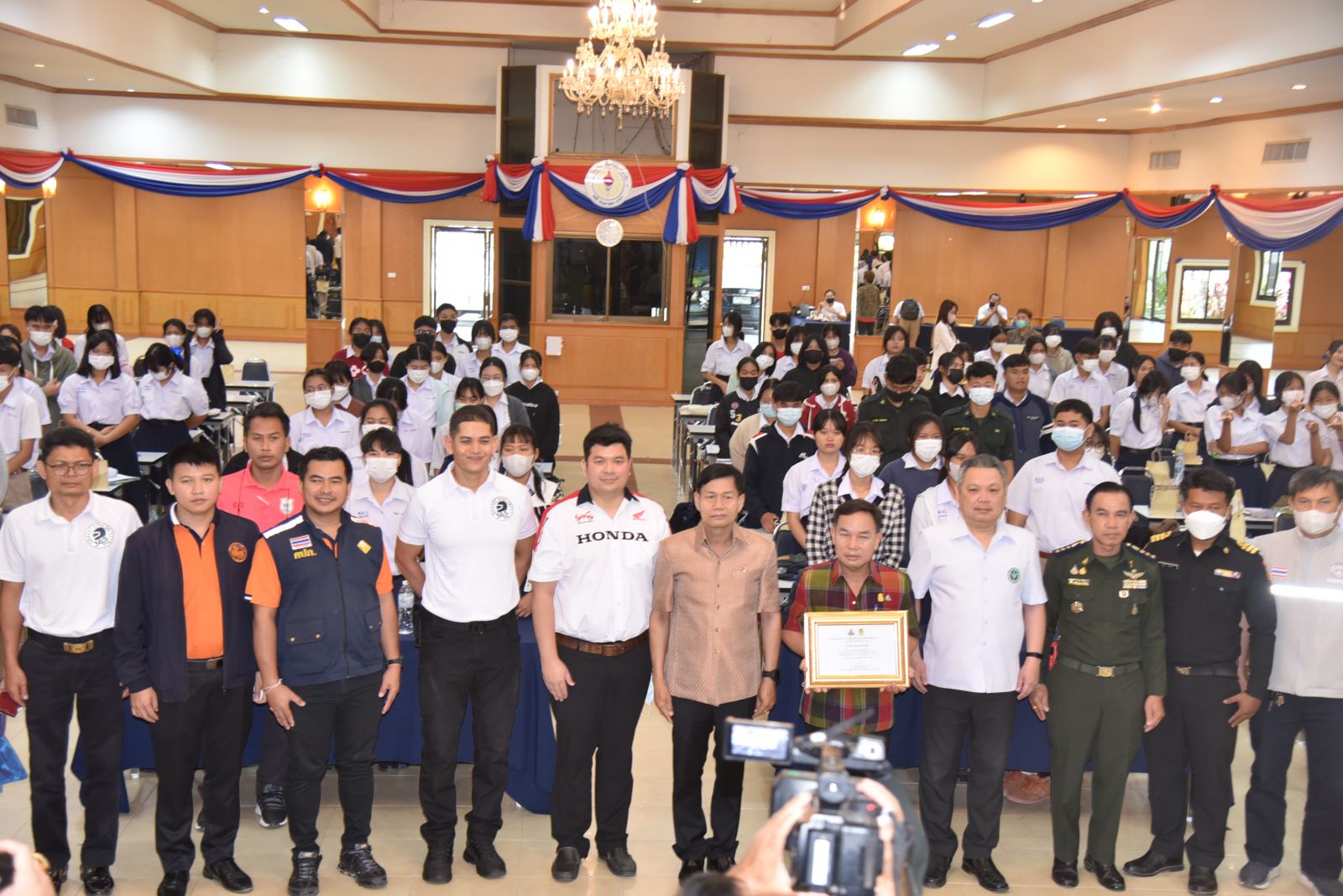 ศรีสะเกษ-ที่หอประชุมโรงเรียนศรีสะเกษวิทยาลัย ผู้ว่าฯศรีสะเกษเปิดฝึกอบรมเยาวชนขับขี่ปลอดภัยเสริมสร้างวินัยจราจรและป้องกันอุบัติภัยในโรงเรียน รุ่นที่ 2