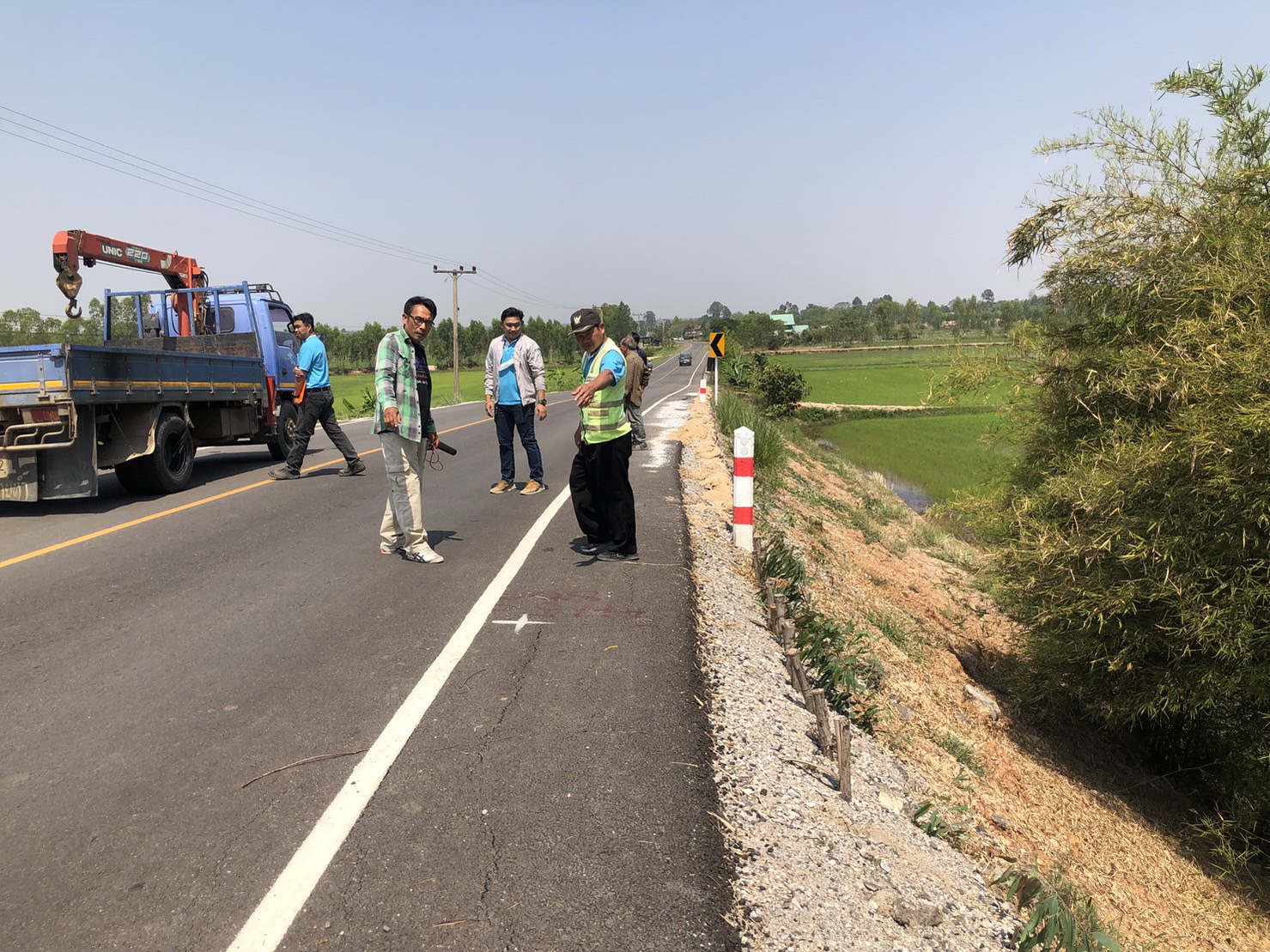 โดยจากการตรวจสอบพบว่าถนนบริเวณดังกล่าวมีลักษณะลาดเอียง เชื่อมกับสะพานข้ามคลองชลประทาน มีจุดชำรุด 2 จุด จุดแรกฝั่งด้านทิศใต้ของสะพาน ตรงไหล่ทางเลนถนนฝั่งทิศตะวันตก และจุดที่ 2 ฝั่งด้านทิศเหนือของสะพาน ตรงไหล่ทางถนนฝั่งตะวันออก ซึ่งการเกิดรอยแตกร้าวสาเหตุจากดินสไลด์ ความยาวฝั่งละประมาณ 10 เมตร ล่าสุดได้มีการซ่อมแซมเบื้องต้น เพื่ออุดรอยร้าว ขณะที่รถทุกชนิดยังสามารถสัญจรไปได้ตามปกติ เนื่องจากไม่มีผลกระทบกับผิวจราจร