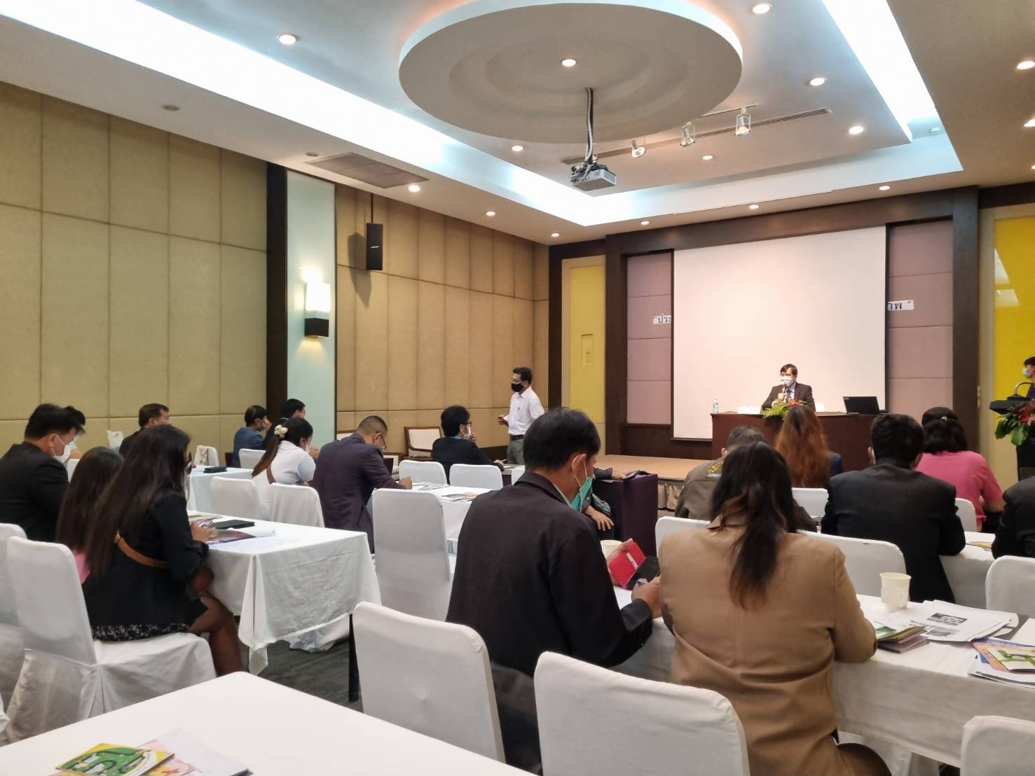 จากนั้นนายศิริศักดิ์ เผือกวัฒนะ ผู้จัดการกลุ่มภารกิจบรรยายหัวข้อ “สิทธิประโยชน์ใหม่ในปี ๒๕๐๖” , กิจกรรมแบ่งกลุ่ม สื่อมวลชนแลกเปลี่ยนสรุปการเรียนรู้ โดยใช้การถอดบทเรียนด้วยเทคนิค “Body paint