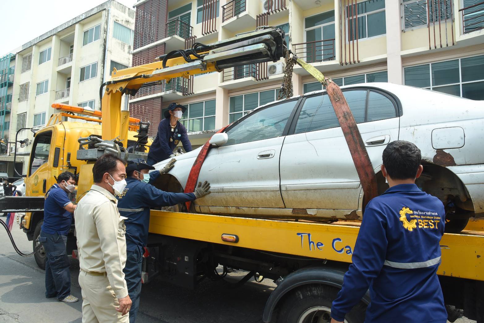 สำนักงานเขตประเวศ ได้สำรวจความเป็นระเบียบเรียบร้อยในพื้นที่ ประกอบกับได้รับการร้องเรียนจากประชาชนว่า มีซากยานยนต์จอดทิ้งไว้บริเวณซอยศรีนครินทร์ 42 จำนวน 1 คัน โดยเขตฯ ได้ประสานสถานีตำรวจนครบาลท้องที่ เพื่อตรวจสอบซากยานยนต์ดังกล่าวว่าอยู่ระหว่างการพิสูจน์ทางคดีหรือไม่ พร้อมทั้งปิดประกาศให้เคลื่อนย้ายซากยานยนต์แล้วเป็นเวลา 15 วัน แต่ยังไม่มีผู้ใดมาทำการเคลื่อนย้าย และจากการตรวจสอบไม่พบเจ้าของซากยานยนต์ โดยวันนี้เขตฯ ร่วมกับสำนักเทศกิจ และกองโรงงานช่างกล สำนักการคลัง ซึ่งให้การสนับสนุนรถสไลด์ในการเคลื่อนย้ายซากยานยนต์ เพื่อนำไปเก็บไว้บริเวณสถานที่เก็บรักษาของกลาง โรงงานกำจัดมูลฝอย เขตหนองแขม โดยจัดเก็บซากยานยนต์ไว้เป็นระยะเวลา 6 เดือน หากไม่มีผู้ครอบครองมาติดต่อขอรับคืน จะดำเนินการขายทอดตลาดซากยานยนต์ตามระเบียบของทางราชการว่าด้วยการดำเนินคดีต่อไป