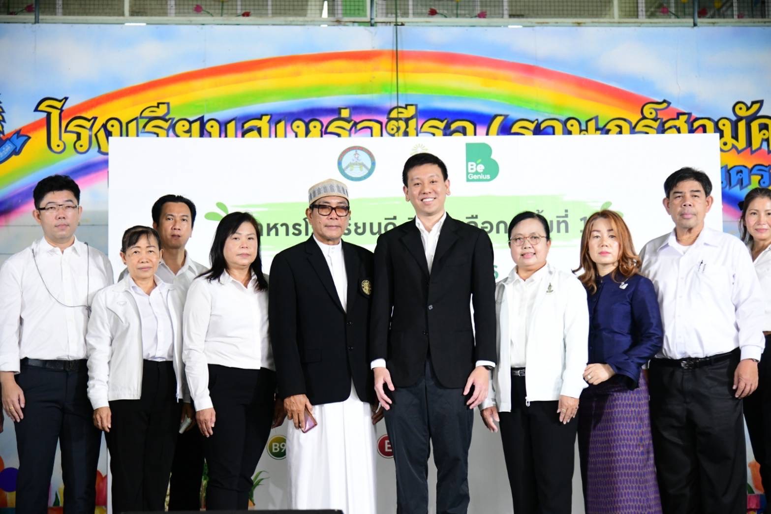 กิจกรรมในวันนี้ มีนางสาวเสาวลักษณ์ วยะนันทน์ ผู้อำนวยการเขตสะพานสูง นางสาวมธุรส เบนท์ สมาชิกสภากรุงเทพมหานคร เขตสะพานสูง ผู้บริหารและบุคลากรโรงเรียนสุเหร่าซีรอ (ราษฎร์สามัคคี) ผู้แทนสำนักการศึกษา ผู้บริหารบี จีเนียส ตัวแทนนักวิจัย NECTEC ผู้นำชุมชน และผู้เกี่ยวข้อง ร่วมกิจกรรม