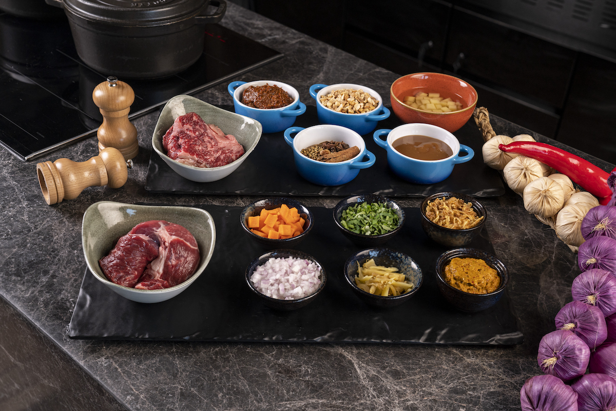 เชิญลิ้มรสการจับคู่รสชาติสุดสร้างสรรค์ของเนื้อออสเตรเลียนุ่มละมุนลิ้นและเครื่องแกงมัสมั่นรสชาติเข้มข้น เจ้าของเมนูสุดพิเศษนี้คือ เชฟกัน-ปฏิญญา ศรีทอง เชฟผู้มากประสบการณ์จากร้าน CRAFT โรงแรมคิมป์ตัน มาลัย กรุงเทพฯ ผู้ช่ำชองด้านการสร้างสรรค์เมนูฟิวชันที่อร่อยล้ำและแปลกใหม่สุด ๆ โดยไฮไลต์ของเมนูพายมัสมั่นเนื้อออสซี่ชิ้นนี้อยู่ที่เนื้อวัวนุ่ม ๆ ตุ๋นในพริกแกงมัสมั่นรสชาติหอมกลมกล่อม ทำให้เกิดเป็นพายออสซี่แนวฟิวชันแสนอร่อยที่คุณต้องห้ามพลาดโดยเด็ดขาด