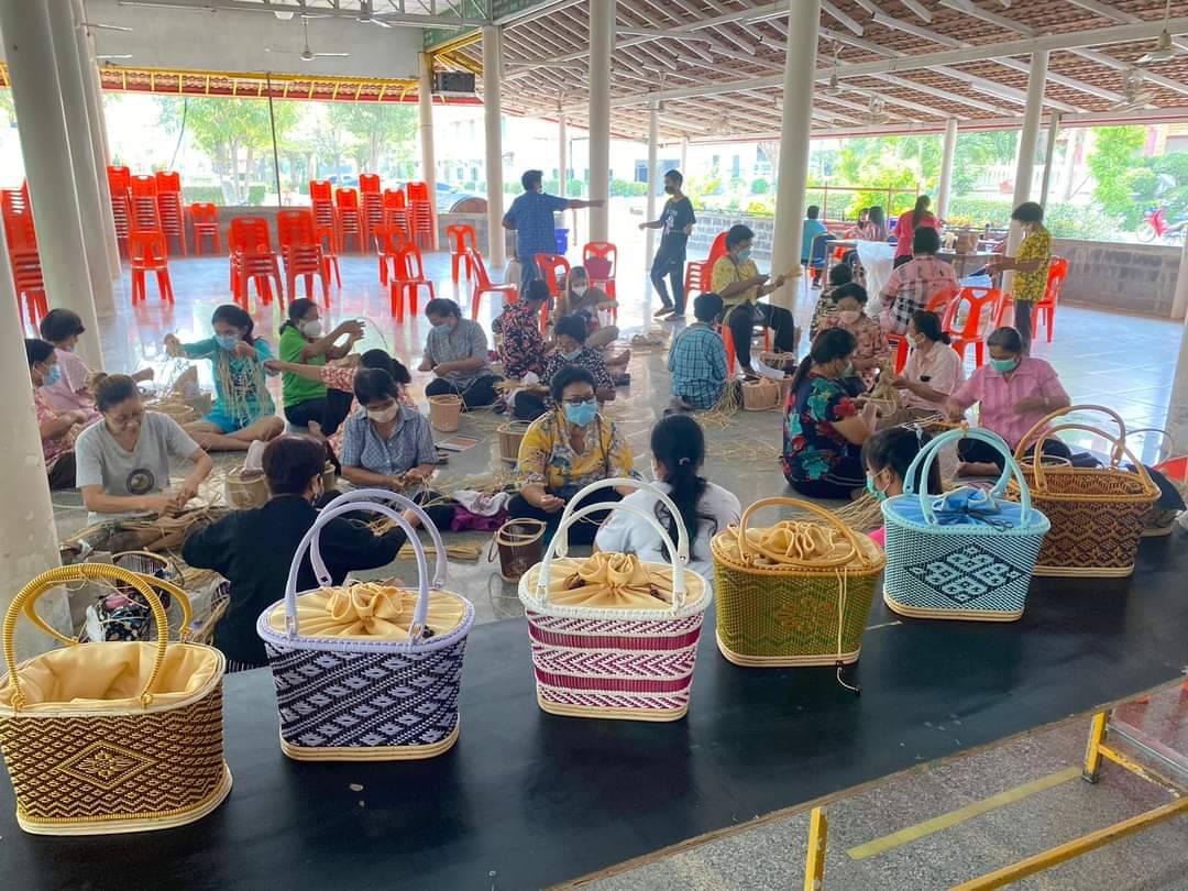 รวมทั้งวิทยากรมาฝึกสอนเพื่อเพิ่มทักษะให้กับสมาชิก หลังสมาชิกมีรายได้ ทุกคนก็นำเงินมาหมุนเวียนต่อยอดในหมู่บ้านและชุมชนของตนเอง เป็นแบบอย่างในการใช้เวลาว่างให้เกิดประโยชน์ เกิดอาชีพเสริมในชุมชนอีกทั้งยังได้ความรู้ในงานฝีมือจนสามารถนำไปเผยแพร่ต่อคนในชุมชนตนเองและชุมชนใกล้เคียง ทำให้คนในชุมชนมีความสัมพันธ์ที่ดีต่อกันโดยการสานตะกร้าหวายเทียมขายมีหลายรูปแบบทั้งตะกร้าพลาสติก กระเป๋าพลาสติกลวดลายหลากหลายดีไซน์ ซึ่งผลิตภัณฑ์มีคุณภาพ สวยงาม และทันสมัย สอดคล้องกับความต้องการของนักท่องเที่ยวและผู้สนใจอีกด้วย