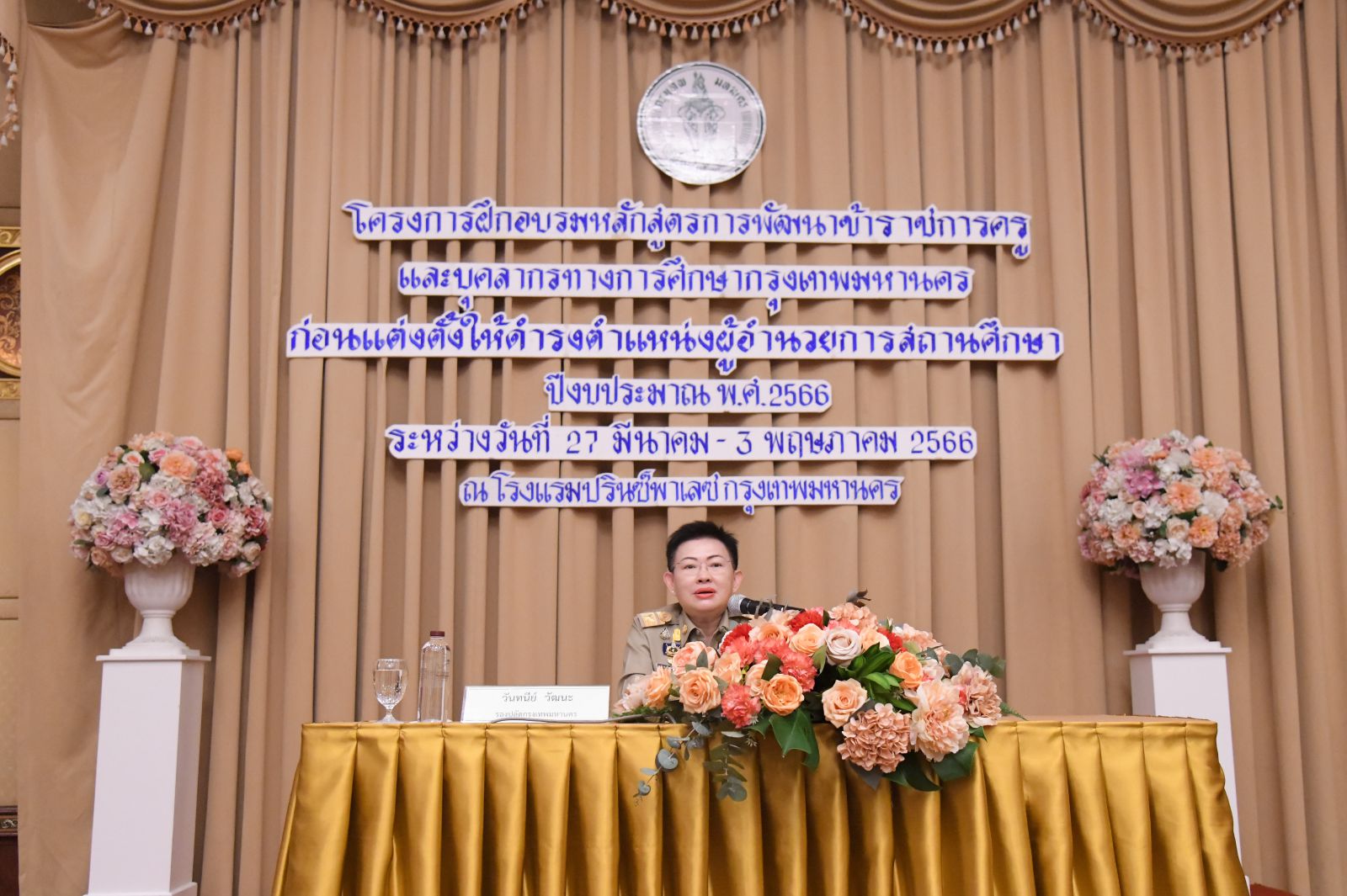 กรุงเทพฯ-(27 มี.ค. 66) แพทย์หญิงวันทนีย์ วัฒนะ รองปลัดกรุงเทพมหานคร เป็นประธานพิธีเปิดโครงการฝึกอบรมหลักสูตรการพัฒนาข้าราชการครูและบุคลากรทางการศึกษากรุงเทพมหานคร ก่อนแต่งตั้งให้ดำรงตำแหน่งผู้อำนวยการสถานศึกษา ปีงบประมาณ พ.ศ. 2566 ณ โรงแรมปรินซ์พาเลซ เขตป้อมปราบศัตรูพ่าย