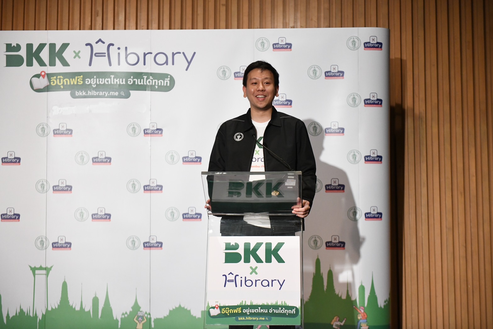 รองผู้ว่าฯ ศานนท์ กล่าวว่า เดือนมีนาคมนี้ กรุงเทพมหานครมีเทศกาลบางกอกวิทยา ซึ่งเป็นเดือนแห่งการอ่านและการเรียนรู้ สำหรับงานในวันนี้ก็เป็นหนึ่งในนโยบายของผู้ว่าฯ ชัชชาติ คือเรื่อง E-Library ซึ่งได้คุยกันมาระยะเวลาหนึ่งแล้ว โดยกทม.เลือกร่วมมือกับ Hibrary ซึ่งเป็นบริษัทที่มีคุณภาพ และเป็นการทดลองกันภายในระยะเวลา 1 ปี เพื่อดูว่าตัวแอปพลิเคชันนี้จะมีผู้อ่านให้การตอบรับมากน้อยเพียงใด แต่แท้ที่จริงสิ่งที่เป็นหัวใจคือ ท่านผู้ว่าฯ มองว่า ห้องสมุดที่ดีที่สุดไม่ใช่ห้องสมุดที่สวยหรูแต่คือห้องสมุดที่ใกล้บ้านและเข้าถึงได้ง่ายที่สุด ทำอย่างไรให้มีห้องสมุดดี ๆ อยู่ทุกที่ แม้ปัจจุบัน กรุงเทพมหานครจะมีห้องสมุดอยู่ 34 แห่ง มีบ้านหนังสืออีก 160 แห่ง แต่ก็ไม่มากพอจะอยู่ใกล้ชาวกทม.ทุกคนได้ และการสร้างขึ้นใหม่ก็ไม่ใช่เรื่องง่าย ดังนั้นการมีห้องสมุดอยู่ทุกที่คือการทำห้องสมุดแบบ E-Library ตามชื่อโครงการนี้คือ อีบุ๊กฟรี อยู่เขตไหน อ่านได้ทุกที่ เชื่อว่าแนวทางที่เราจะทำห้องสมุดทั้งออฟไลน์และออนไลน์แบบนี้ต้องทำให้เกิดขึ้นควบคู่กันไป สำหรับแอปพลิเคชัน Hibrary ถือเป็นการเริ่มต้นที่ดี แม้ตอนนี้อาจยังมีจำนวนหนังสือไม่มากนัก รวมถึงอาจต้องใช้เวลาในการจองและรอคิวในการยืมหนังสือพอสมควร เพราะยังอยู่ในช่วงเริ่มต้น เมื่อได้รับการตอบรับที่ดีและมีผู้เข้าใช้มากขึ้นก็จะทำการพัฒนาต่อไปทั้งในแง่การเพิ่มจำนวนหนังสือและจำนวนบัญชีสมาชิก อย่างไรก็ตาม การร่วมมือในครั้งนี้ก็นับได้ว่าเป็นการเพิ่มช่องทางการเข้าถึงการอ่านรวมถึงสร้างนวัตกรรมการอ่านที่ทันสมัย และส่งเสริมการเรียนรู้ตลอดชีวิตให้กับชาวกรุงเทพมหานคร