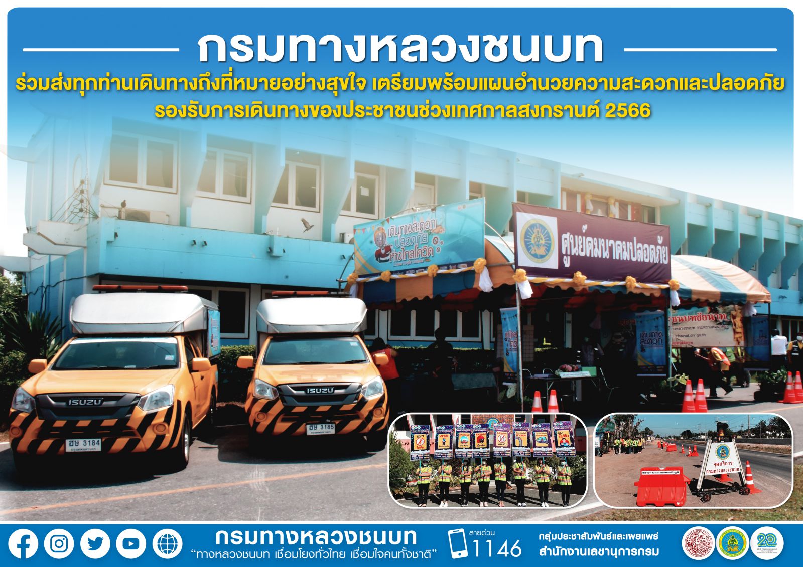 ทั้งนี้ ทช. ได้จัดเจ้าหน้าที่อำนวยความสะดวกปลอดภัยให้กับประชาชนบนโครงข่ายทางหลวงชนบทตลอดช่วงเทศกาลสงกรานต์ 2566 พร้อมขอให้ประชาชนระมัดระวังในการเดินทาง สังเกตป้ายเตือน ป้ายแนะนำและปฏิบัติตามกฎจราจรอย่างเคร่งครัด เพื่อความปลอดภัยของตนเองและเพื่อนร่วมทาง โดยประชาชนสามารถติดต่อสอบถามเส้นทางหรือแจ้งเหตุได้ที่สายด่วน ทช. โทร. 1146