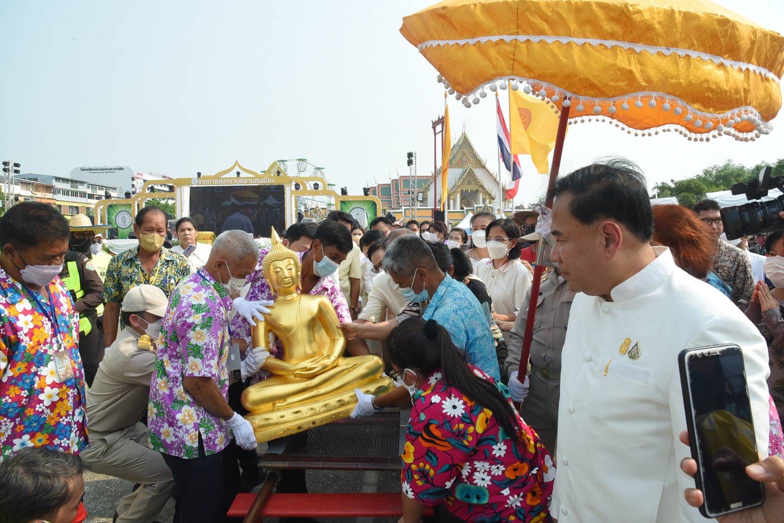 ทั้งนี้ กรุงเทพมหานครได้อัญเชิญพระพุทธสิหิงค์ พระพุทธรูปศักดิ์สิทธิ์คู่บ้านคู่เมือง ออกจากพระที่นั่งพุทไธสวรรย์ พิพิธภัณฑสถานแห่งชาติ พระนคร ปีละครั้งให้ประชาชนกราบสักการะและสรงน้ำขอพรเพื่อความเป็นสิริมงคล ในเทศกาลสงกรานต์ โดยในปีนี้อัญเชิญมาประดิษฐานบนมณฑป ณ ลานคนเมือง ตั้งแต่วันที่ 12-14 เม.ย. 66 เป็นครั้งแรกในรอบ 3 ปี หลังว่างเว้นการจัดงานเทศกาลสงกรานต์เนื่องจากสถานการณ์โควิด-19