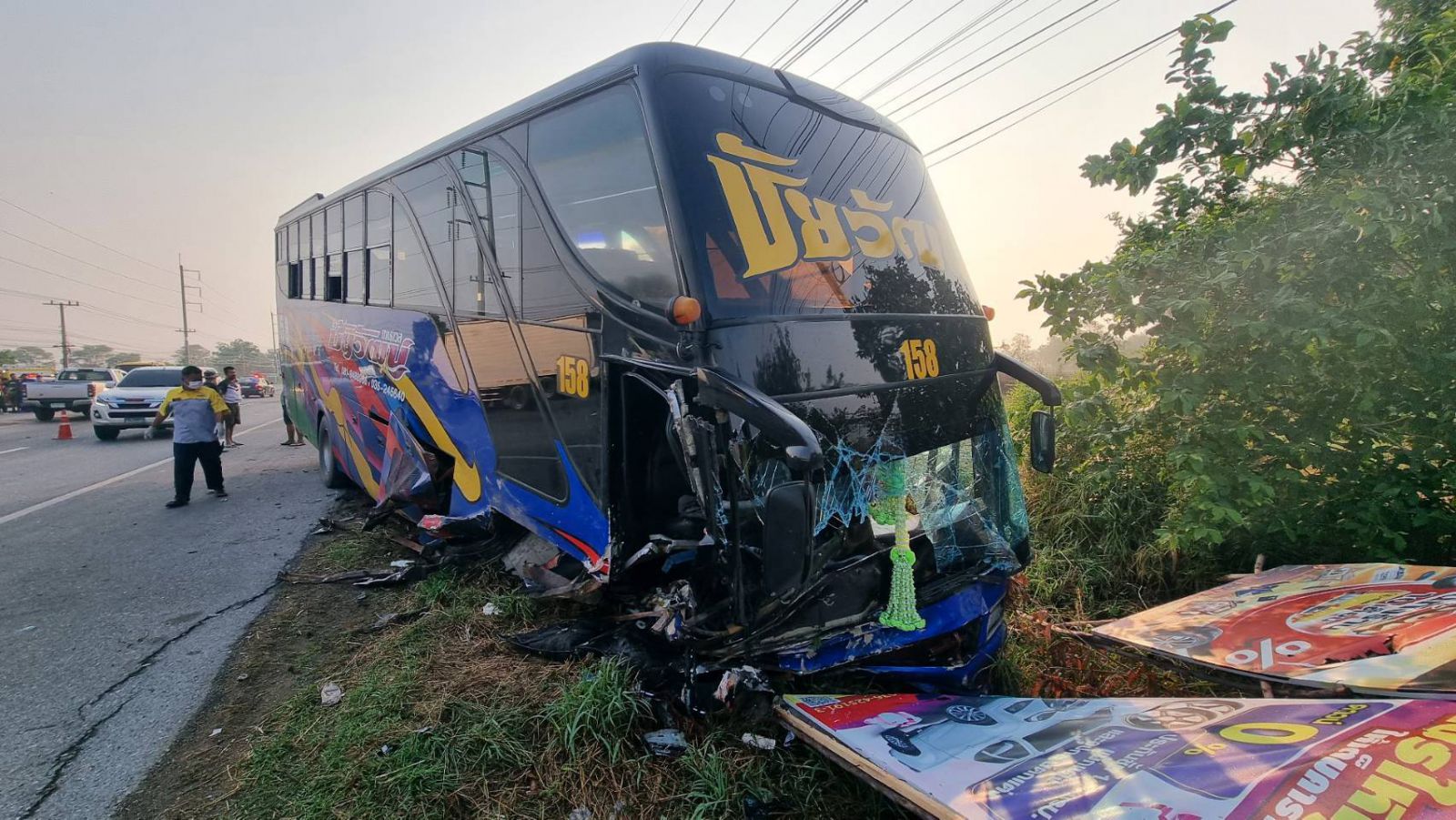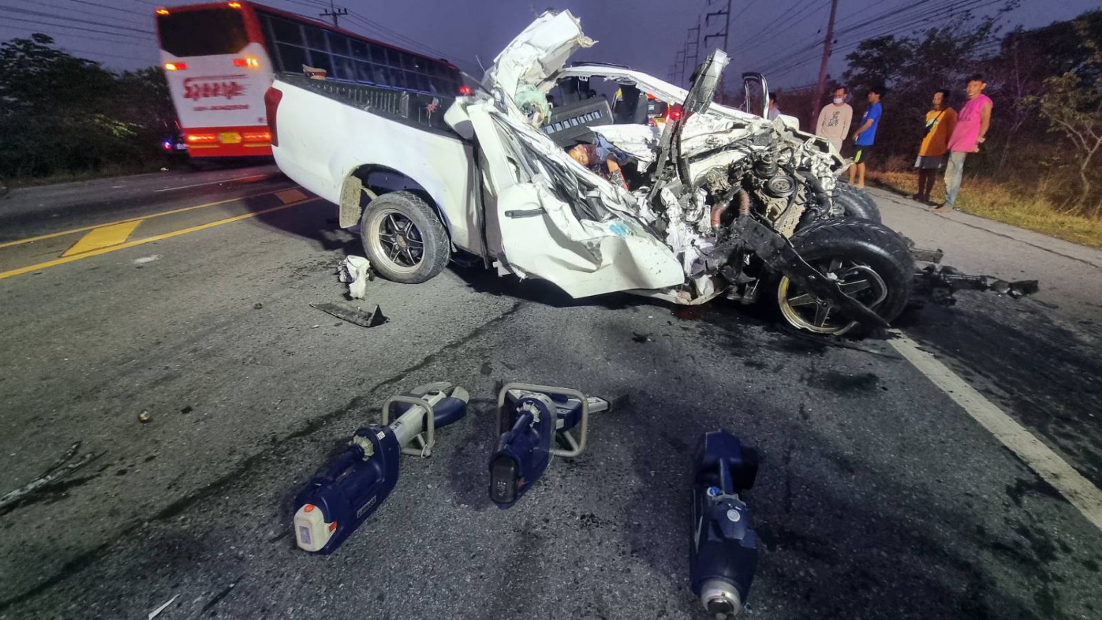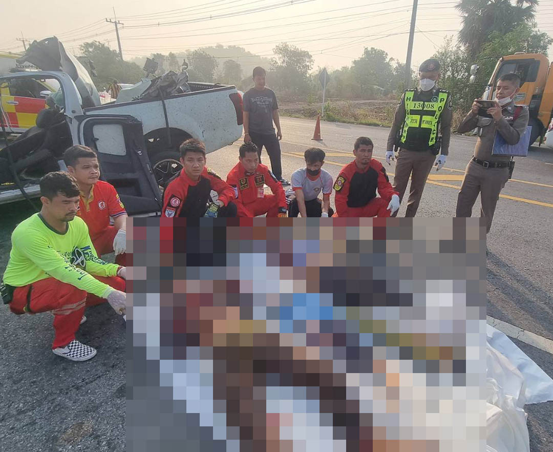 แก๊งยาเสพติดนั่งกอดปืนอาก้าเพื่อนขับรถกระบะพุ่งชนรถบัสเสียชีวิตคาที่3เจ็บ4