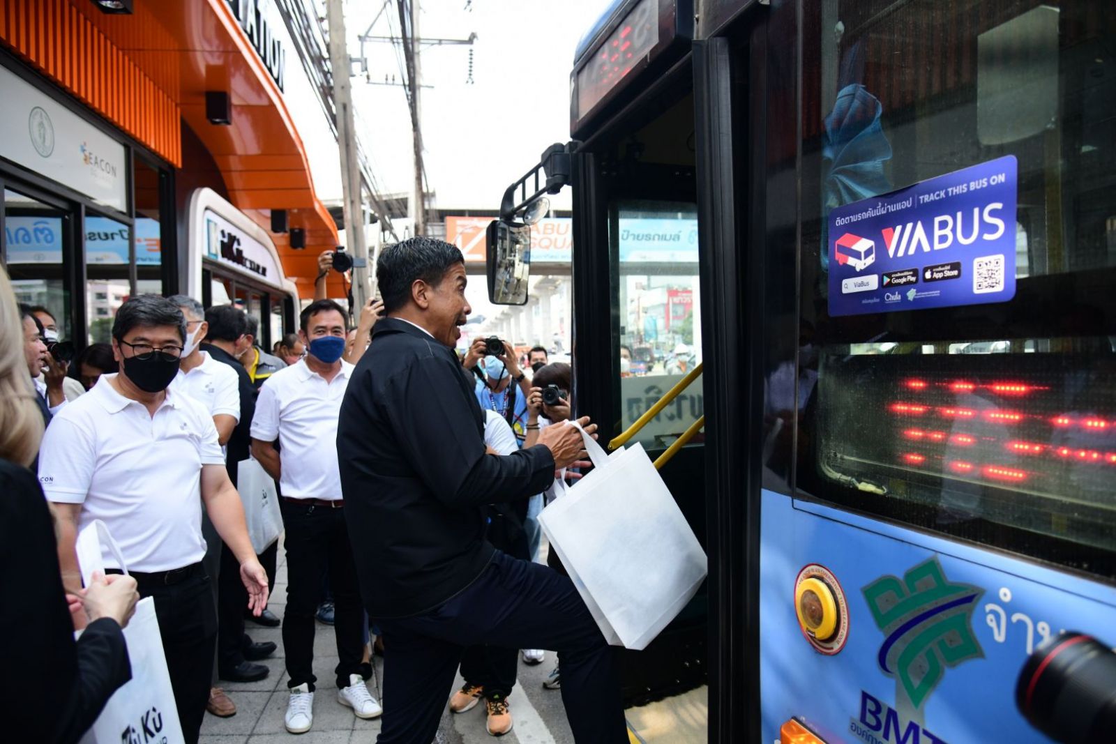 “สำหรับการจัดทำป้ายรถเมล์ติดแอร์พลังงานแสงอาทิตย์ครั้งนี้ ถือเป็นการนำนวัตกรรมเข้ามาใช้เพื่อประโยชน์สาธารณะ และสิ่งที่น่าดีใจคือเป็นป้ายรถเมล์ที่เกิดขึ้นจากความร่วมมือของหลายหน่วยงานทั้งภาคเอกชนและภาครัฐ ไม่ว่าจะน้ำประปาดื่มได้ฟรี ซึ่งในอนาคตต้องขอขยายความร่วมมือเพิ่มจำนวนอีกหลายแห่ง หรือระบบ Wi-Fi ฟรี ที่ NT สนับสนุน ซึ่งในอนาคตต้องหารือกันเรื่องท่อร้อยสายสื่อสารลงดินเพื่อให้เกิดประโยชน์แก่ทุกภาคส่วนต่อไป ต้องขอขอบคุณผู้มีส่วนเกี่ยวข้องทุกท่าน หากมีแค่กรุงเทพมหานครเพียงฝ่ายเดียวคงพัฒนาได้แค่ในกรอบที่จำกัด แต่การที่มีความร่วมมือของหลายภาคส่วน โดยเฉพาะเอกชน ห้าง ร้าน หรือบริษัทต่าง ๆ จะทำให้สามารถพัฒนาอะไรดี ๆ ให้กับเมืองได้อีกมาก ซึ่งหวังว่าจุดเริ่มต้นในวันนี้จะมีการขยายผลไปที่อื่น ๆ ในภายหน้า ขอบคุณซีคอนสแควร์ที่เป็นต้นแบบนำนวัตกรรมมาใช้และคิดถึงประโยชน์ส่วนรวม” ผู้ว่าฯ กทม. กล่าวทิ้งท้าย