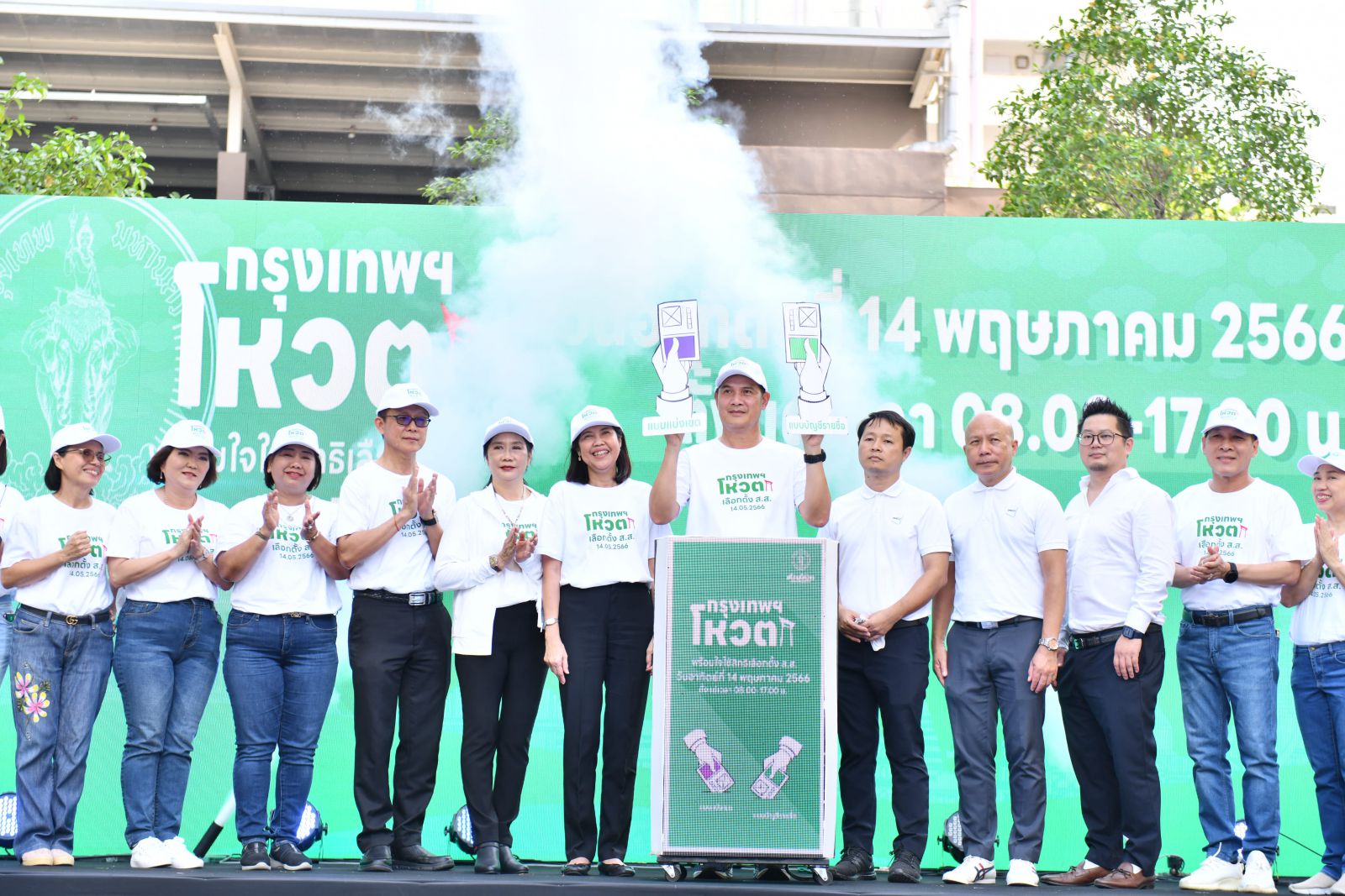 “ขณะนี้เหลือเวลาอีก 3 วันเท่านั้น ที่ประชาชนทุกคนจะได้ทำหน้าที่ของตนเองในระบอบประชาธิปไตย ไปใช้สิทธิออกเสียงเลือกคนที่รัก เลือกพรรคที่ชอบ เพื่อเข้าไปทำหน้าที่แทนพวกเราทุกคนในสภาผู้แทนราษฎร ซึ่งกรุงเทพมหานครพร้อมที่จะดำเนินการจัดการเลือกตั้งตามที่ได้รับมอบหมายจากคณะกรรมการการเลือกตั้ง ให้เป็นไปด้วยความเรียบร้อย สุจริต และโปร่งใสทุกขั้นตอน และขอเชิญชวนน้อง ๆ เยาวชนผู้มีสิทธิเลือกตั้งครั้งแรกหรือกลุ่ม First Time Voter ออกมาใช้สิทธิเลือกตั้งเพื่อกำหนดอนาคตของประเทศ โดยการเลือกตั้งในครั้งนี้มีบัตรเลือกตั้งทั้งหมด 2 ใบ บัตรเลือกตั้งสีม่วงสำหรับเลือกตั้งสมาชิกสภาผู้แทนราษฎรแบบแบ่งเขตเลือกตั้ง บัตรเลือกตั้งสีเขียวสำหรับเลือกตั้งสมาชิกสภาผู้แทนราษฎรแบบบัญชีรายชื่อ และขอให้น้อง ๆ เยาวชนผู้มีสิทธิเลือกตั้งครั้งแรก ตระหนักถึงข้อห้ามสำหรับการเลือกตั้ง ซึ่งหากฝ่าฝืนจะมีโทษตามที่กฎหมายกำหนด” รองปลัดฯ กทม. กล่าว