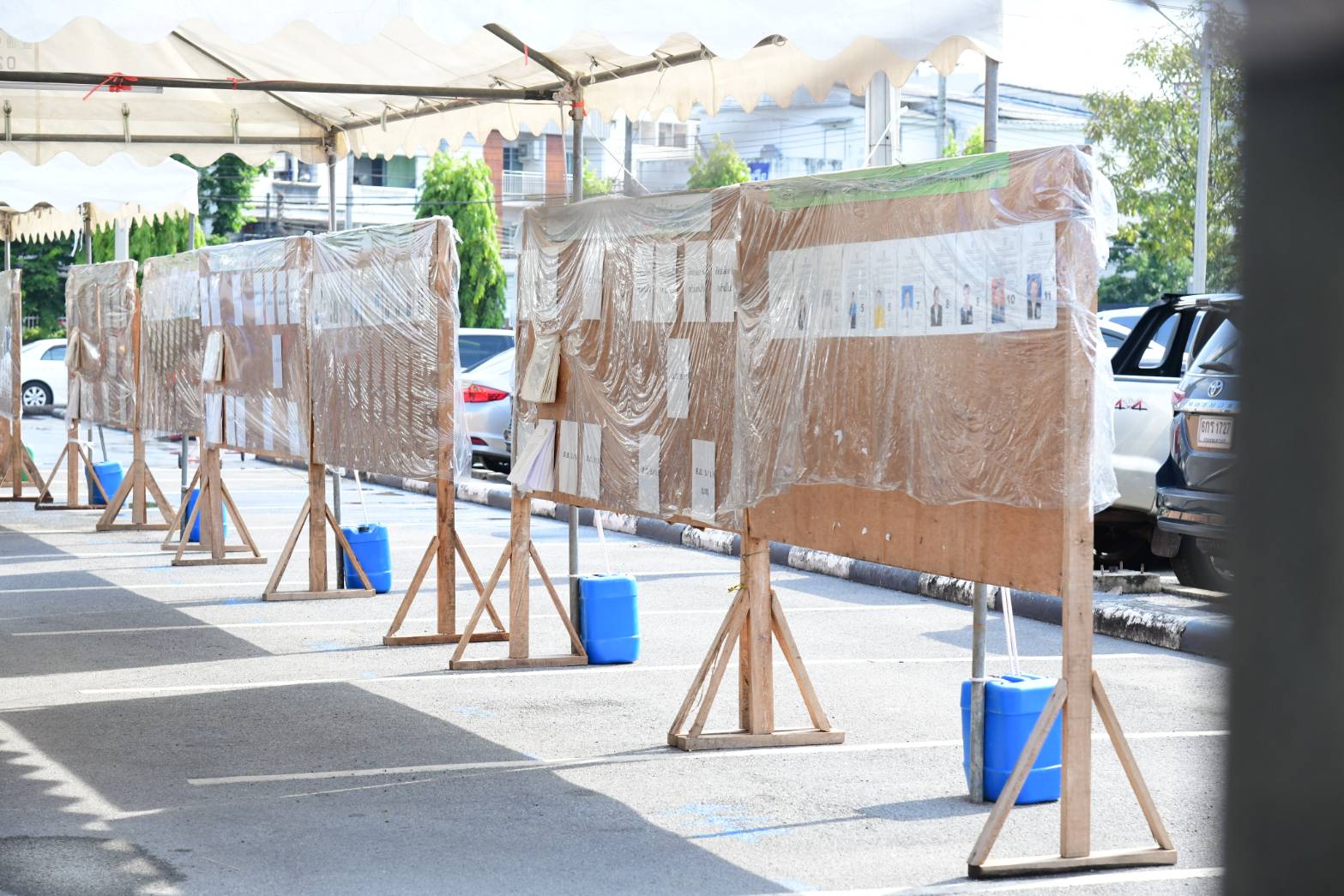 รองปลัดกรุงเทพมหานคร กล่าวว่า ภาพรวมของวันนี้ทุกสำนักงานเขตมีการเตรียมหีบบัตรเลือกตั้งและวัสดุอุปกรณ์การเลือกตั้งประจำหน่วยเลือกตั้งให้กับคณะกรรมการประจำหน่วยเลือกตั้ง(กปน.) โดยอุปกรณ์พร้อมแล้วทั้งหมดอยู่ที่สำนักงานเขต และในพรุ่งนี้ (14 พ.ค.66)กปน.ต้องมารับอุปกรณ์ทั้งหมดตั้งแต่เวลาประมาณ 04.00 น. และนำวัสดุ อุปกรณ์ทั้งหมด ไปจัดตั้งเตรียมความพร้อมที่หน่วยเลือกตั้งในเวลาประมาณ 06.00 น. ซึ่งวันนี้ได้ดูในเรื่องของพท้นที่และวัสดุอุปกรณ์ต่าง ๆ และได้มอบหมายให้เขตตรวจสอบความมั่นคงแข็งแรงของเต็นท์โดยใช้ถุงทรายถ่วงไว้ที่เสาหลักหรือขึงสมอกับพื้นดิน เพื่อป้องกันเมื่อมีลมกระโชกแรงหรือฝนฟ้าคะนอง การมีอุปกรณ์ป้องกันน้ำขังบนหลังคาเต็นท์ รวมถึงทุกเขตจะต้องเตรียมหน่วย Best ให้พร้อมเพื่อมาแก้ไขเหตุในกรณีเร่งด่วน สำหรับเขตดอนเมืองเตรียมไว้ถึง 20 ทีม ที่พร้อมกระจายไป 186 หน่วยเลือกตั้งในพื้นที่ นอกจากนี้ยังได้ดูถึงความพร้อมของป้ายผู้รับสมัครรับเลือกตั้ง และไฟฟ้าแสงสว่างที่เพียงพอในแต่ละหน่วยเลือกตั้ง ซึ่งในภาพรวมทั้งหมด มีความพร้อม ในการ เลือกตั้งวันพรุ่งนี้ จึงขอเชิญชวนพี่น้องประชาชนให้มาใช้สิทธิ์เลือกตั้งในเวลา 08.00-17.00 น. และขอให้ตรวจสอบสภาพอากาศอย่างใกล้ชิด