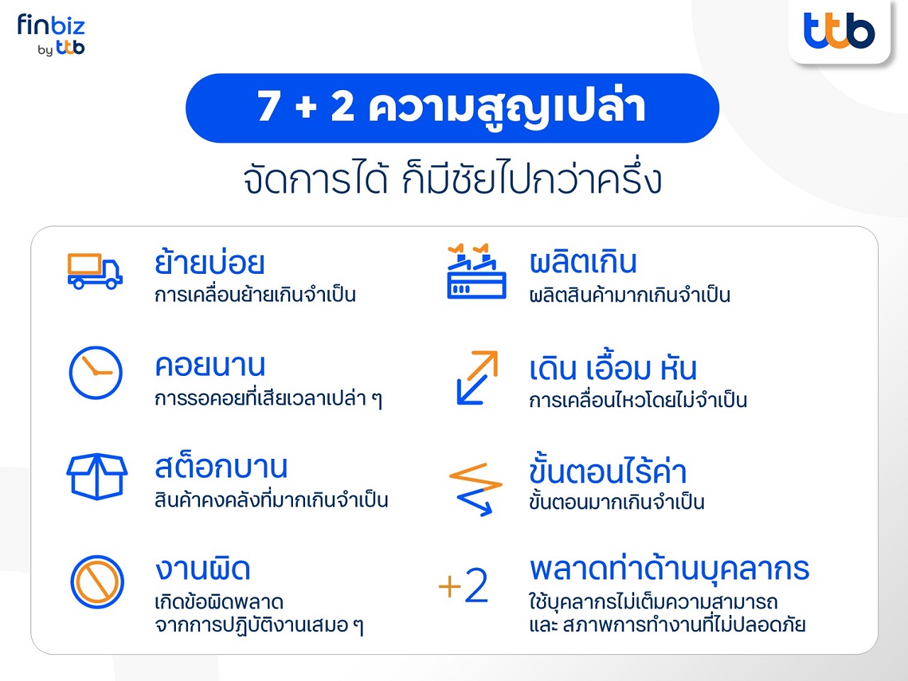 โดยความสูญเปล่า มีทั้งหมด 7+2 ประการ ดังนี้