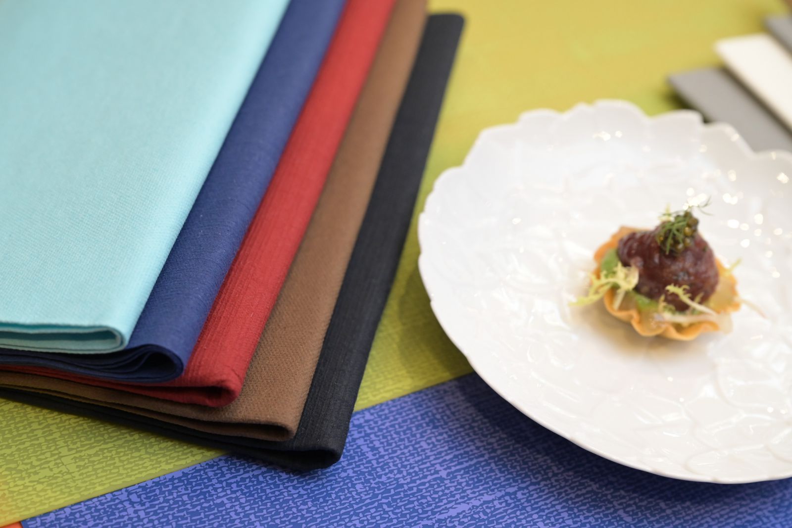 รสชาติของอาหารเมนูพิเศษ ตามแนวทางของ Duni ที่วางคอนเซปต์ชัดเจน คือ Go การใช้งานแบบสะดวกราคาไม่สูง เช่น napkins ที่ใช้ในร้านอาหารแบบทานสบาย ๆ สไตล์คาเฟ่ Joy เน้นความสวยงาม สนุกสนานสร้างอารมณ์และบรรยายกาศที่ดีของงานเลี้ยงในกลุ่มครอบครัวและเพื่อนฝูง และWow เน้นความหรูหรา ให้ความรู้สึก Luxury เหมาะกับ Fine Dining และร้านที่ให้ความสำคัญกับบรรยากาศร้าน และดีไซน์
