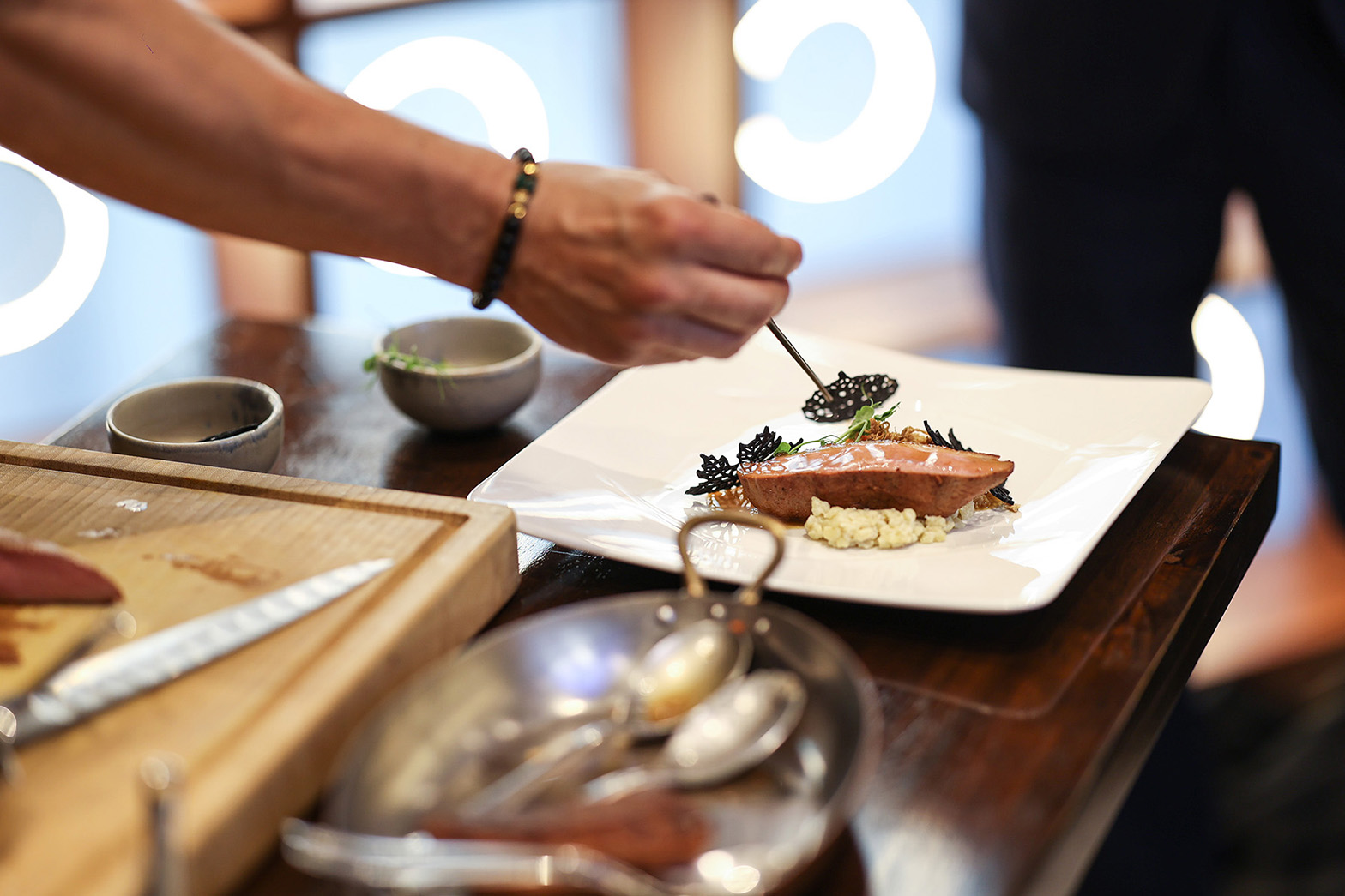 งานนำเสนอด้วยไฮไลต์สำคัญได้แก่ “Chef Show” การนำเสนอการปรุงเมนูที่รังสรรค์ขึ้นเฉพาะงานนี้ต่อแขกผู้มีเกียรติ ในเมนูที่มีชื่อว่า “Roasted Duck Breast, Crispy Duck Confit, Emulsified Umeshu.” โดยเมนูนี้เชฟพฤกษ์ได้แรงบันดาลใจให้ดีไซน์มาจากบทเพลงพิเศษในชื่อ “อย่าแตกสลายเพราะใครเลย” ที่ขับร้องโดยคุณจี๊บ เทพอาจ กวินอนันต์ ในฐานะศิลปิน JEEP TK featuring SARAH SALOLA และแขกผู้มีเกียรติก็ได้รับฟังเพลงนี้กันแบบสดๆ จากศิลปินทั้ง 2 ท่าน เป็นอีกหนึ่งไฮไลต์สำคัญของงาน