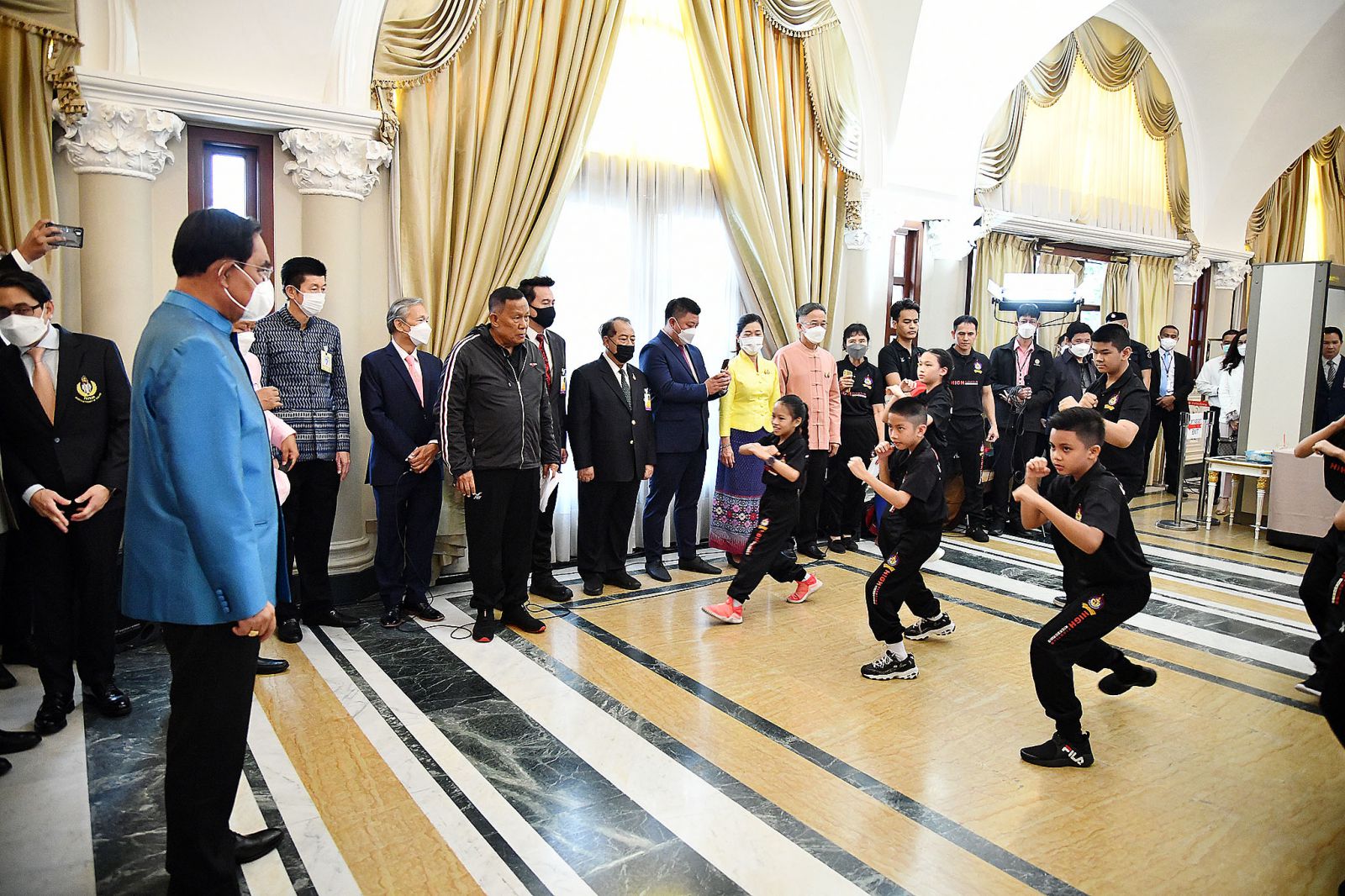 นายกรัฐมนตรีชมการแสดงศิลปวัฒนธรรมและการออกกำลังกายด้วยมวยไทยเลิศฤทธิ์ โดยคณะเด็ก เยาวชน และครูผู้ฝึกสอน ประกอบด้วย ท่าร่ายมวยไทยเลิศฤทธิ์ ได้แก่ ท่าร่ายหมัด 17 ท่า ท่าร่ายศอก 26 ท่า ท่าร่ายรวม หมัด เท้า เข่า ศอก ถีบ 26 ท่า และการสาธิตการร่าย เพื่อนำไปใช้ในการต่อสู้ระดับสูง ได้แก่ การป้องกันเตะ (แทนวิรุฬหกกลับ) การป้องกันหมัด (ตาเถรค้ำฝัก) การป้องกันหมัดด้วยการใช้ศอกตัด (อิเหนาแทงกริช) การป้องกันหมัด (หนูไต่ราว) การใช้นิ้วเพื่อดับนัยน์ตาคู่ต่อสู้ (สวนทวน) การป้องกันเตะด้วยศอก (หักงวงไอยรา) ท่ากลมวยจู่โจม (ฤาษีบดยา) และการต่อสู้กับศัตรูหลายคน (สู้สิบทิศ)