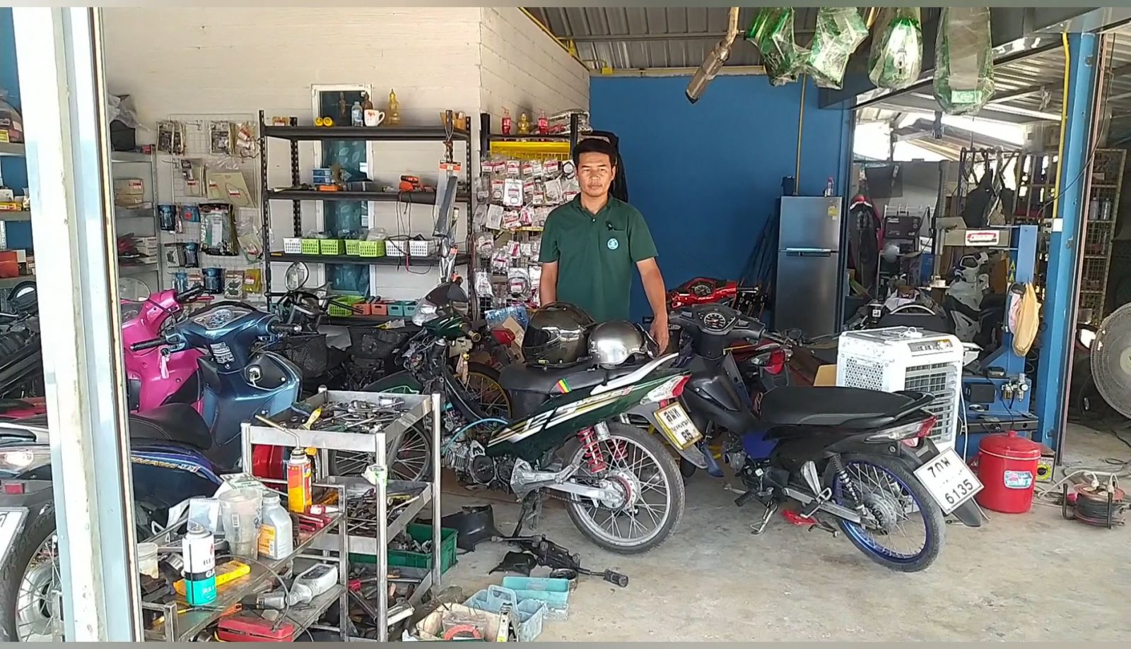 ที่เกิดเหตุ พบ นายณัชพล เริญไทสงค์ อายุ 38 ปี เจ้าของร้านยืนรอพบเจ้าหน้าที่ตำรวจ โดยนำภาพกล้องวงจรปิดและเล่าเหตุการณ์ให้ทราบว่า ช่วงเกิดเหตุมีคนร้ายเป็นชาย ใส่เสื้อกันฝนสีเหลือง มวกกันน๊อกสีแดง ขับรถจยย.ฮอนด้าเวฟ 100 สีน้ำเงิน มาจอดที่หน้าร้านและไม่ดับเครื่อง มาถามหาราคาอะไหล่ แผ่นปะยาง ซึ่งตนสังเกตว่าเหมือนเขาไม่สนใจสิ่นที่ถามและมองมาที่ตนและจังหวะที่ตนล้มหยิบอะไหล่ คนร้านได้มากระชากสร้อยที่คอตน ตนรู้สึกเหมือนมีคนมาจับคอตนจึงใช้ศอกปัดและจะถีบคนร้าย จากนั้นคนร้ายได้คว้าปืนจากเอวมายิงข่มขู่ทำท่ายิงแต่เหมือนมีเสียงปืนดังแชะแต่กระสุนไม่ออก เท่าที่มองก็น่าจะเป็นปืนจริง ตนจึงหลบในร้านและคนร้ายจะรีบหลบหนีไป ซึ่งขณะเกิดเหตุ มีภรรยา ลูกชายตน อายุ 10 กว่าขวบและลูกค้าอยู่ในร้านต่างตกใจวิ่งหลบกัน จ้าละหวั่นด้วยความหวาดกลัว