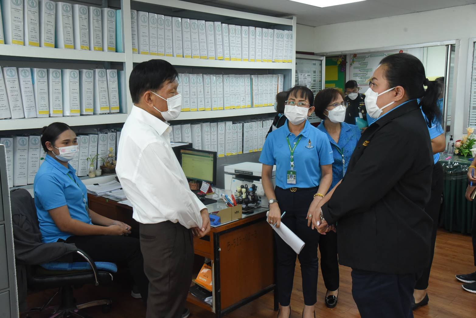 ติดตามการใช้งานระบบสารสนเทศภาษีท้องถิ่นของกรุงเทพมหานคร (BMA-TAX) ในการจัดเก็บรายได้ เขตฯ มีที่ดิน 25,003 แปลง สิ่งปลูกสร้าง 41,078 แห่ง ห้องชุด 53,012 ห้อง สรุปผลการสำรวจที่ดินและสิ่งปลูกสร้าง รวมทั้งสิ้น 119,093 รายการ สำรวจครบทั้งหมดแล้ว ทั้งนี้ รองผู้ว่าราชการกรุงเทพมหานครได้สอบถามถึงปัญหาและอุปสรรคในการใช้งานระบบการชำระภาษี BMA-TAX การบันทึกข้อมูลและค้นหาข้อมูลรายชื่อผู้เสียภาษี ศักยภาพของอุปกรณ์คอมพิวเตอร์ที่ใช้งาน ประสิทธิภาพระบบเครือข่ายแบบใช้สายสัญญาณ (LAN) และแบบไร้สายสัญญาณ (WIFI) โดยเน้นย้ำการปฏิบัติงานด้วยความรอบคอบโปร่งใส เพื่อให้การจัดเก็บภาษีรายได้เป็นไปอย่างถูกต้องตามเป้าหมายที่กำหนด ในโอกาสนี้ รองผู้ว่าราชการกรุงเทพมหานคร ได้ตรวจเยี่ยมศูนย์บริหารราชการ ฉับไวใสสะอาด (Bangkok Fast & Clear : BFC) เขตวัฒนา เป็นการพัฒนารูปแบบการให้บริการของกรุงเทพมหานคร โดยนำงานบริการของ 10 ฝ่ายในสำนักงานเขต มาให้บริการรวมกันที่จุดเดียว เพื่ออำนวยความสะดวกแก่ประชาชนที่มารับบริการและติดต่อราชการกับกรุงเทพมหานคร โดยแจ้งประเภทงานที่มารับบริการตรงจุดประชาสัมพันธ์ รับบัตรคิวจากตู้ BMA Q รอเรียกเข้ารับบริการตามประเภทงานของฝ่าย ทั้งนี้ รองผู้ว่าราชการกรุงเทพมหานคร ได้สอบถามถึงปัญหาและอุปสรรคในการทำงาน ประสิทธิภาพของอุปกรณ์คอมพิวเตอร์ที่ใช้ปฏิบัติงาน จำนวนประชาชนที่มาใช้บริการในแต่ละฝ่าย การให้บริการภายในกรอบระยะเวลาที่กำหนด เพื่อให้ประชาชนที่มารับบริการเกิดความพึงพอใจ