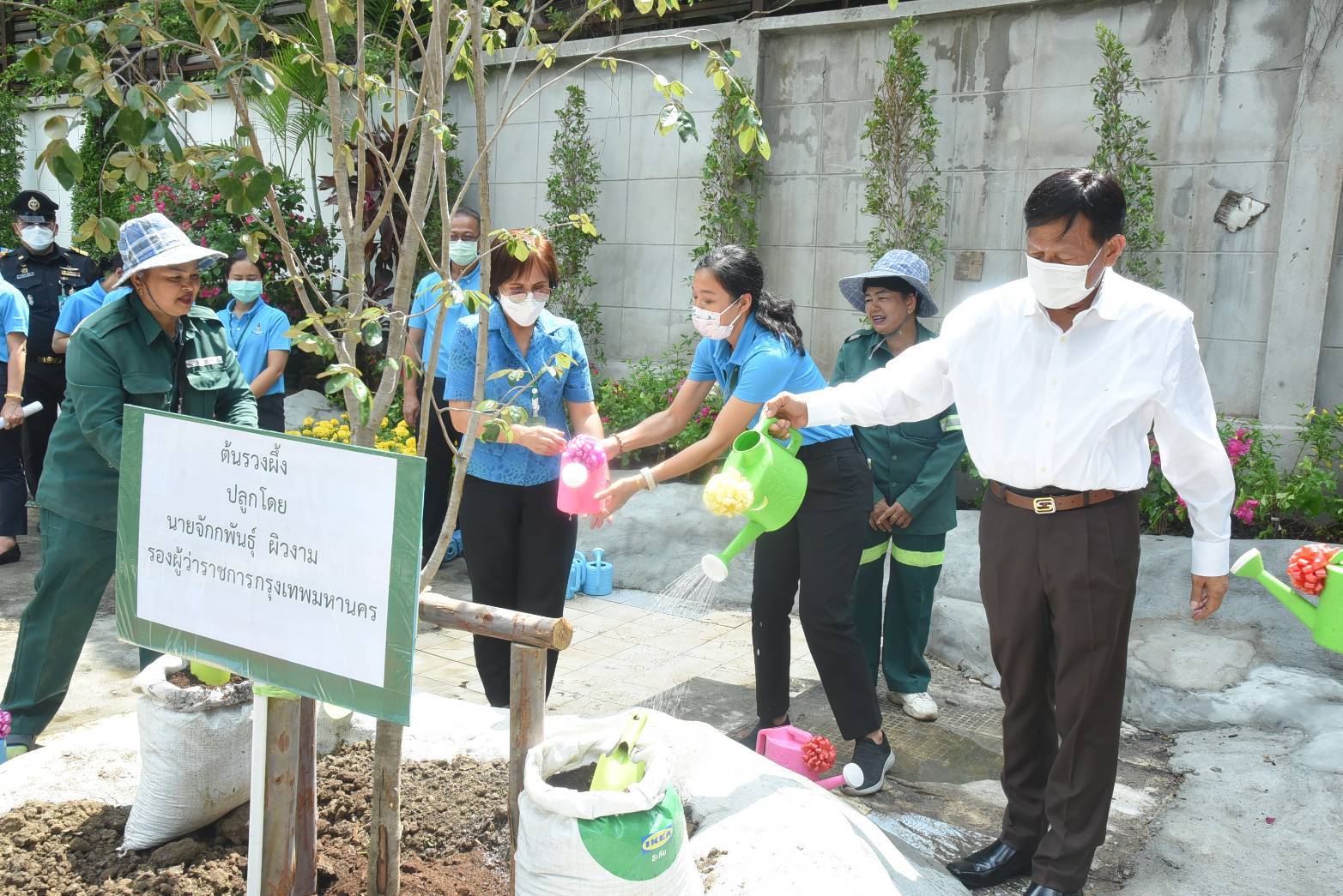สำรวจความก้าวหน้าการจัดทำสวน 15 นาที สวนหย่อมริมคลองเป้ง ซึ่งเขตฯ ได้ดำเนินการปรับปรุงพื้นที่ว่างริมคลองเป้ง จัดทำเป็นสวนหย่อมในรูปแบบ Pocket Park ตามนโยบายของผู้ว่าราชการกรุงเทพมหานคร เพื่อเพิ่มพื้นที่สีเขียว สถานที่พักผ่อนหย่อนใจ และลานออกกำลังกายให้แก่ประชาชนในพื้นที่ รวมถึงการพัฒนาพื้นที่ว่างจัดทำเป็นสวนสาธารณะ ในรูปแบบสวน 15 นาที เพื่อให้ประชาชนเข้าถึงพื้นที่สีเขียวใกล้บ้านได้ภายใน 15 นาที หรือระยะทางในการเดิน 800 เมตร ในโอกาสนี้ รองผู้ว่าราชการกรุงเทพมหานคร พร้อมด้วยคณะผู้บริหารเขตวัฒนา ได้ร่วมกันปลูกต้นรวงผึ้ง เพื่อเพิ่มพื้นที่สีเขียว สร้างกำแพงกรองฝุ่นทั่วกรุง บริเวณสวนดังกล่าว