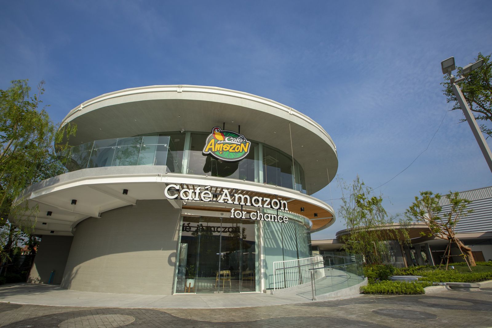 สิ่งที่โดดเด่นไม่แพ้กันคือ ร้าน Café Amazon for Chance ที่ให้บริการโดยบาริสต้าผู้พิการทางการได้ยิน เพื่อช่วยส่งเสริมอาชีพให้ผู้พิการ สร้างโอกาสให้กับทุกคนในสังคม โดยตัวอาคารโดดเด่นและแปลกใหม่ด้วยรูปทรงกลมที่เชื่อมโยงกับเกาะจ่ายน้ำมันอย่างลงตัว ด้วยการนำเทคโนโลยี 3D Printing ที่เน้นการออกแบบให้แสงธรรมชาติเข้าถึงได้ เพื่อลดการใช้ปริมาณไฟฟ้า และใช้ Solar Rooftop ที่สร้างพลังงานไฟฟ้าเพื่อนำมาหมุนเวียนใช้ภายในอาคาร พร้อมทั้งทางเข้าออกสัญจรรอบแกนกลางที่มีต้นไม้ใหญ่เป็นประธาน ช่วยหมุนเวียนรถที่เข้ามาเติมน้ำมันให้คล่องตัวดียิ่งขึ้น