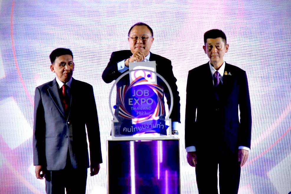 วันที่ 8 มิถุนายน 2566 เวลา 14.30 น. ณ บริเวณเวทีกลาง Hall EH 100 -102 ศูนย์นิทรรศการและการประชุมไบเทค บางนา กรุงเทพมหานครนายสุชาติ ชมกลิ่น รัฐมนตรีว่าการกระทรวงแรงงาน มอบหมาย นายสุรชัย ชัยตระกูลทอง ผู้ช่วยรัฐมนตรีประจำกระทรวงแรงงาน เป็นประธานในพิธีเปิดงาน JOB EXPO THAILAND 2023 โดยมีนายบุญชอบ สุทธมนัสวงษ์ ปลัดกระทรวงแรงงาน นายไพโรจน์ โชติกเสถียร อธิบดีกรมการจัดหางาน ผู้บริหารกระทรวงแรงงาน ร่วมพิธีเปิด ท่ามกลางผู้บริหารหน่วยงานภาครัฐ ภาคเอกชน และภาคีเครือข่ายที่ร่วมกันจัดงาน