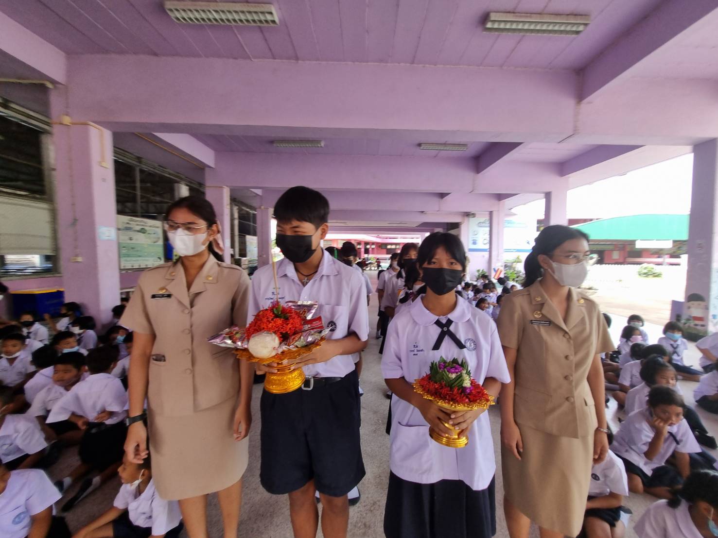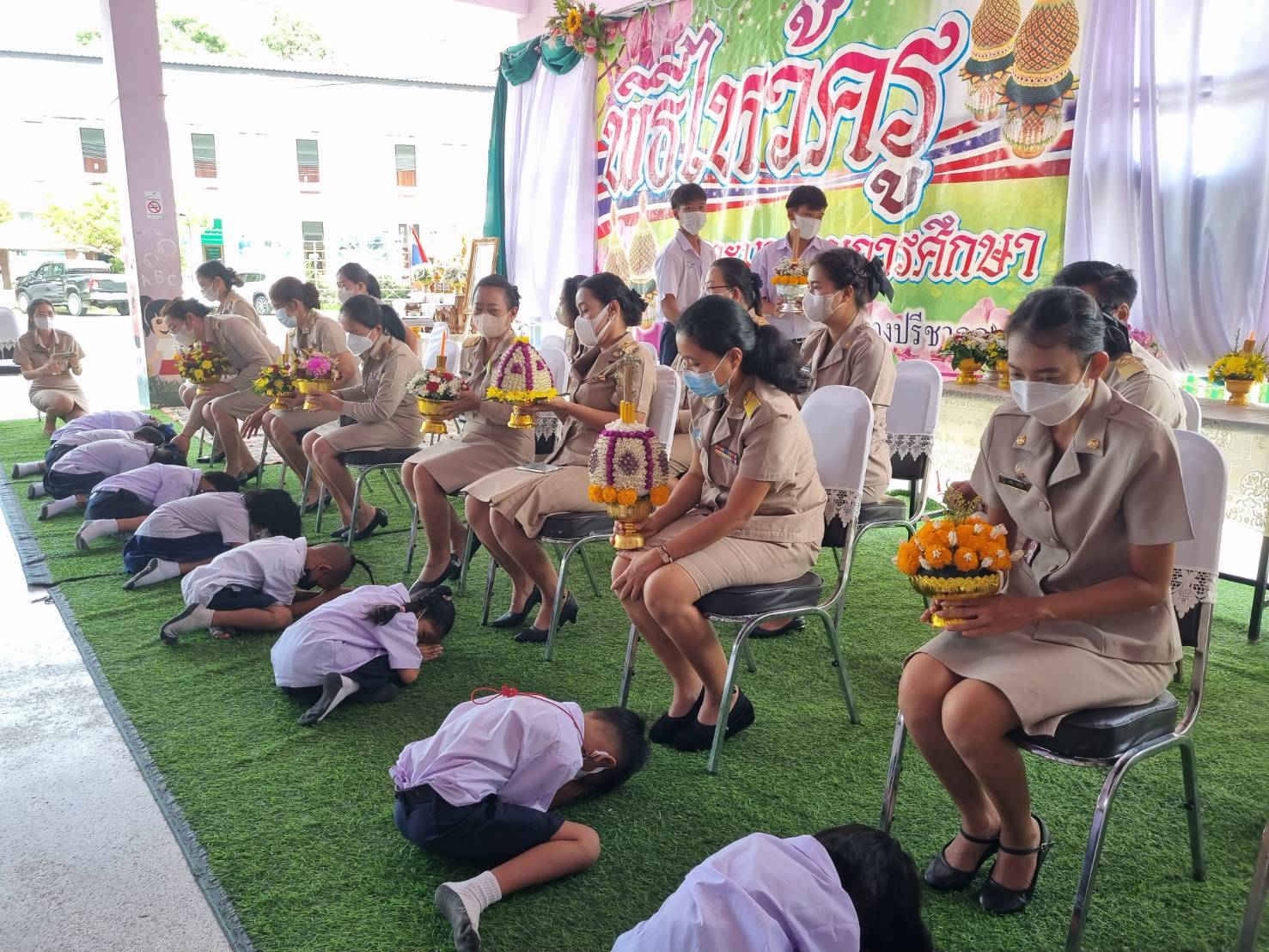 ก่อนการไหว้ครู ได้มีการมอบทุนการศึกษา สำหรับนักเรียนในทุกระดับชั้น จากนั้น ให้ตัวแทนนักเรียนแต่ละระดับชั้นนำพานดอกไม้ ธูป เทียนแพ มากราบฝากตัวเป็นลูกศิษย์กับครูประจำชั้น – ครูผู้สอน และ นางภารณี ผ่องแผ้ว ผู้อำนวยการโรงเรียนฯ กล่าวให้โอวาท