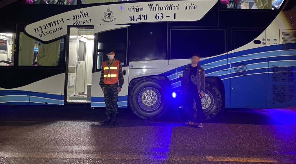 ได้ตรวจรถโดยสารประจำทางลิกไนท์สาย กรุงเทพฯ-ภูเก็ต หมายเลขข้างรถ ม.4ข 63-1 ทะเบียน 15-3999 กรุงเทพมหานคร คนขับชื่อนาย เฉลิมชัย ชะดา อายุ 38 ปี ที่อยู่ 62/7 ม.3 ต.ลำภี อ.ท้ายเหมือง จว.พังงา