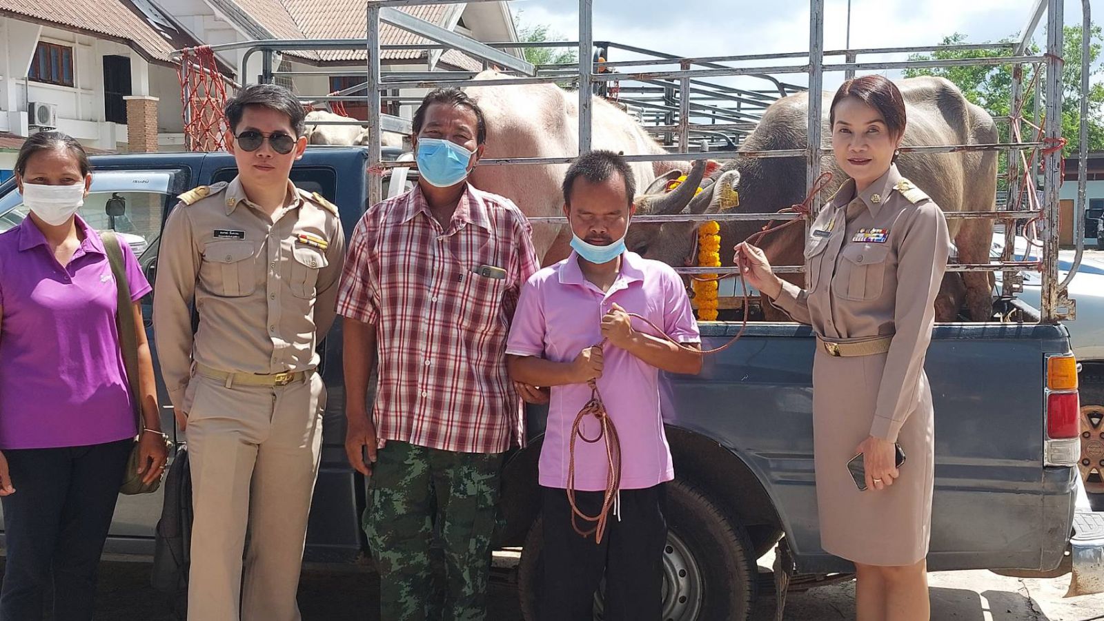 นายนัทธ์เวโรจน์ บูชาพัฒน์ ปศุสัตว์จังหวัดศรีสะเกษ นายนพนันท์ บุญคล้าย นายอำเภอศิลาลาด นางสาวพรนภา ชาชุมพร ผอ.สวท.ศรีสะเกษ และนายจักรพันธ์ เลาะหะนะ นายกองค์การบริหารส่วนตำบลโจดม่วง นำคนตาบอดจังหวัดศรีสะเกษ เข้ารับมอบโค-กระบือ จำนวน 20 ครอบครัวๆละ 2 ตัว รวมโคทั้งสิ้น 40 ตัว ทั้งนี้เพื่อนำไปให้คนตาบอดที่เป็นเกษตรกรเลี้ยง โดยห้ามนำโคที่ได้รับการไถ่ชีวิตจากโรงฆ่าสัตว์ไปฆ่าหรือขาย แต่ให้จำหน่ายลูกได้ และเพื่อเป็นพ่อพันธุ์แม่พันธุ์ต่อไป