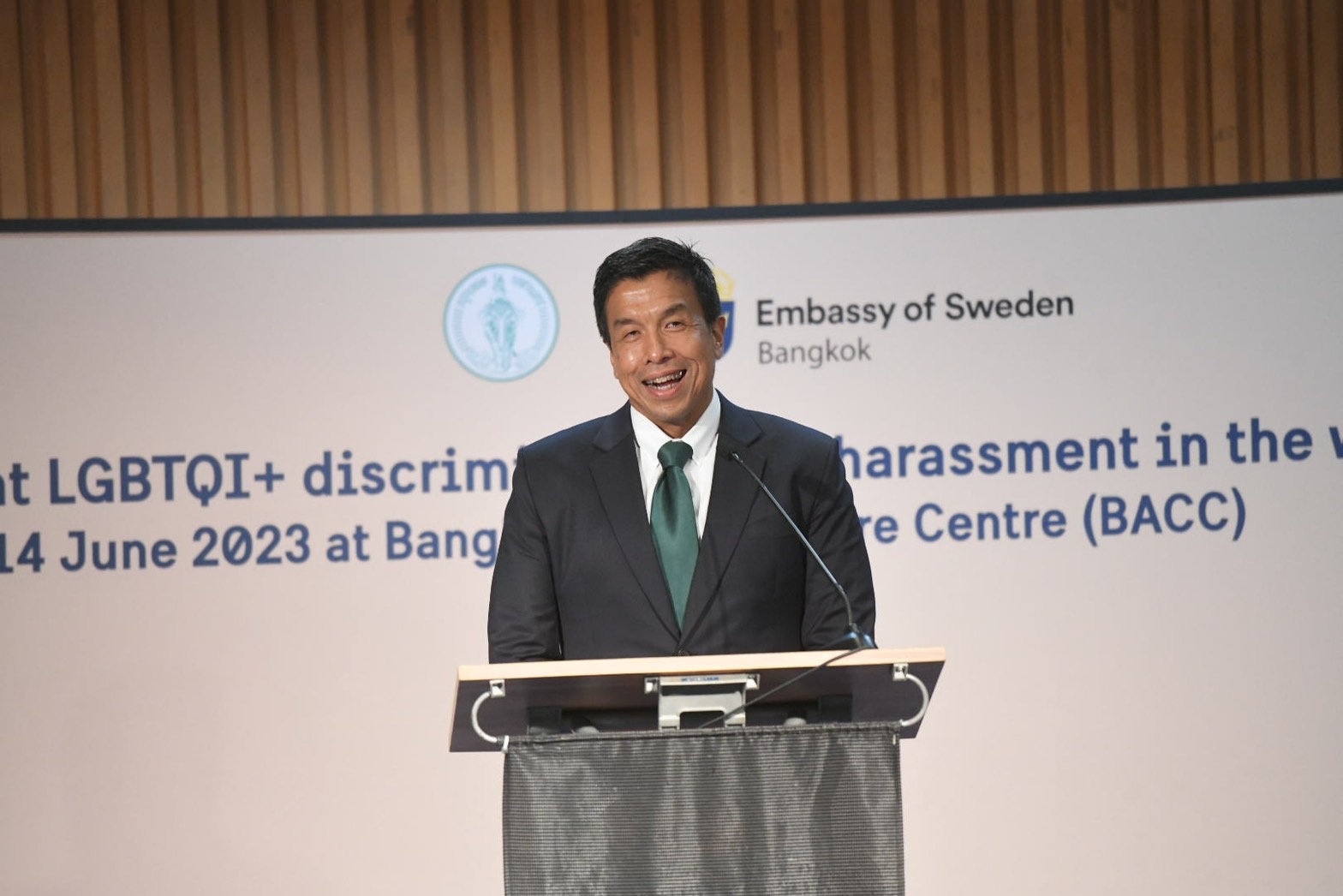 กรุงเทพฯ-(14 มิ.ย. 66) นายชัชชาติ สิทธิพันธุ์ ผู้ว่าราชการกรุงเทพมหานคร กล่าวเปิดและร่วมฟังการสัมมนาในหัวข้อ “การป้องกันการเลือกปฏิบัติและการคุกคามบุคคลผู้มีความหลากหลายทางเพศ (LGBTQI+) ในที่ทำงาน” (How to prevent LGBTQI+ discrimination and harassment in the workplace) โดยมีนายยูน ออสเตริม เกรินดาห์ล เอกอัครราชทูตสวีเดนประจำประเทศไทย ร่วมกล่าวเปิดงาน ณ ห้องอเนกประสงค์ ชั้น 1 หอศิลปวัฒนธรรมแห่งกรุงเทพมหานคร เขตปทุมวัน
