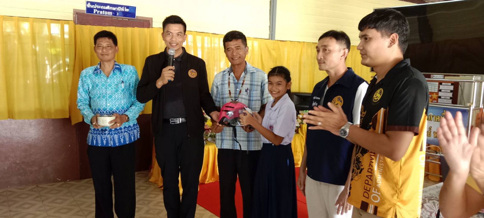 ในการนี้ นายอำเภอท้ายเหมืองได้ทำกิจกรรมมอบหมวกนิรภัยให้นักเรียนได้นำไปใช้ในชีวิตประจำวันบางส่วนด้วย