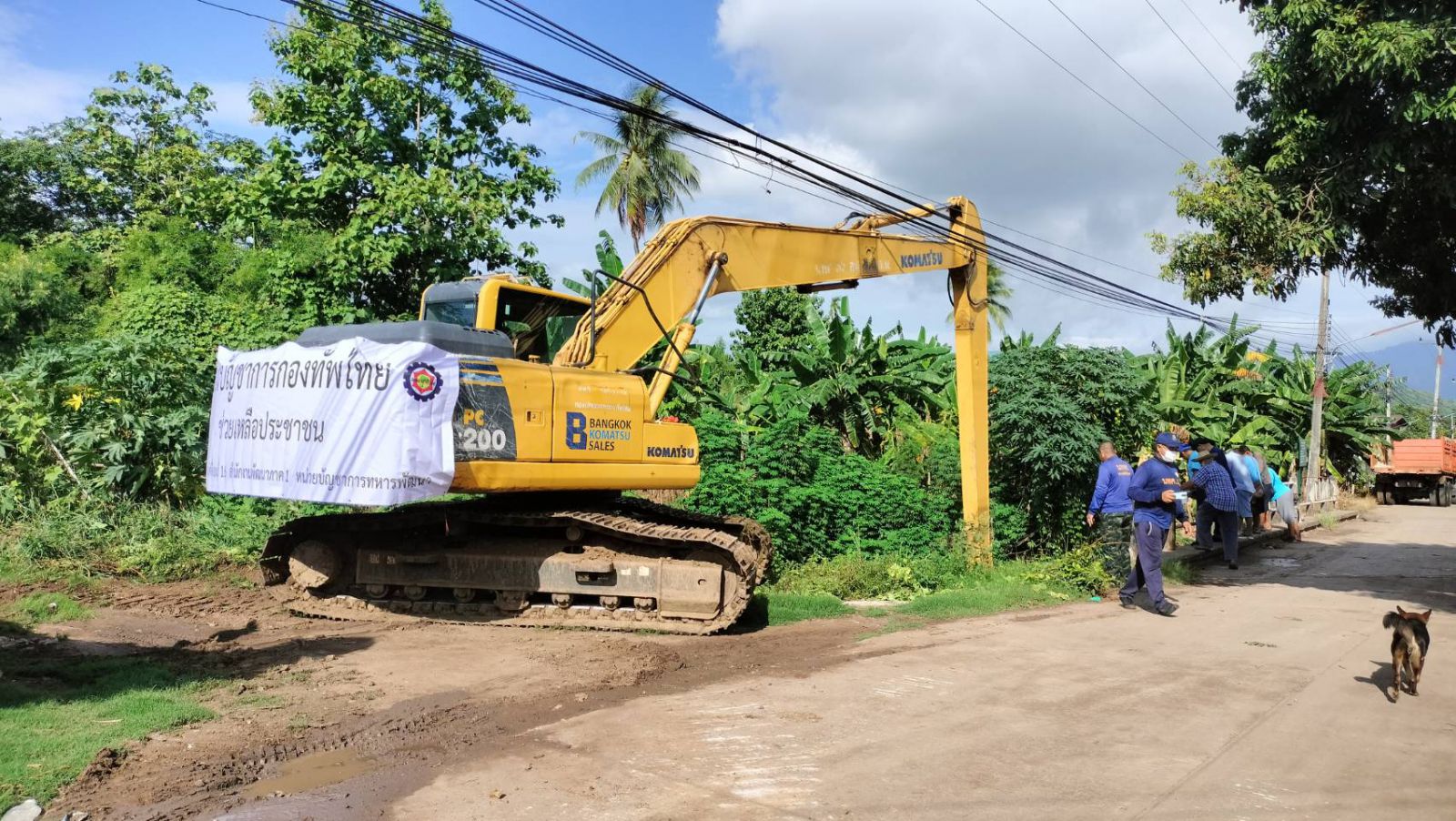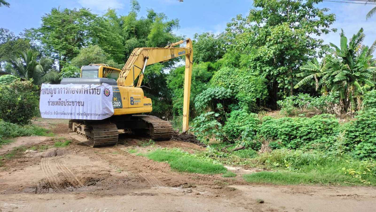 เพชรบูรณ์-นพค.16 ร่วมกับประชาชนจิตอาสาตำบลป่าเลา และผู้นำชุมชนในพื้นที่ ช่วยกันขนย้ายเศษไม้, กิ่งไม้ และใช้รถขุดตักขุดลอกดินโคลนที่กีดขวางสะพานข้ามลำห้วย