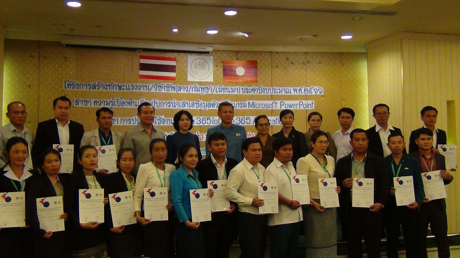 นางสาวสุภาภรณ์ อาจวารินทร์ ผู้อำนวยการสถาบันพัฒนาฝีมือแรงงาน 40 มุกดาหาร เปิดเผยว่า ตามที่สถาบันพัฒนาฝีมือแรงงาน 40 มุกดาหาร ได้จัดฝึกอบรมโครงการสร้างทักษะแรงงาน / วิชาชีพ ให้กับประชาชนสาธารณรัฐประชาธิปไตยประชาชนลาว ซึ่งได้รับการสนับสนุงบประมาณจากกรมความร่วมมือระหว่างประเทศ กระทรวงการต่างประเทศใน 2 หลักสูตรได้แก่ 1.หลักสูตรความรู้เบื้องต้นเกี่ยวกับการนำเสนอข้อมูลด้วยโปรแกรม Microsoft PowerPoint โดยได้รับความอนุเคราะห์วิทยากรจากมหาวิทยาลัยราชภัฏอุบลราชธานี และคณะวิทยาการคอมพิวเตอร์ และหลักสูตรการประยุกต์ใช้งาน office 365 โดยได้รับอนุเคราะห์วิทยากรจากบริษัท แอปซ่าส์โซลูชั่น จำกัด