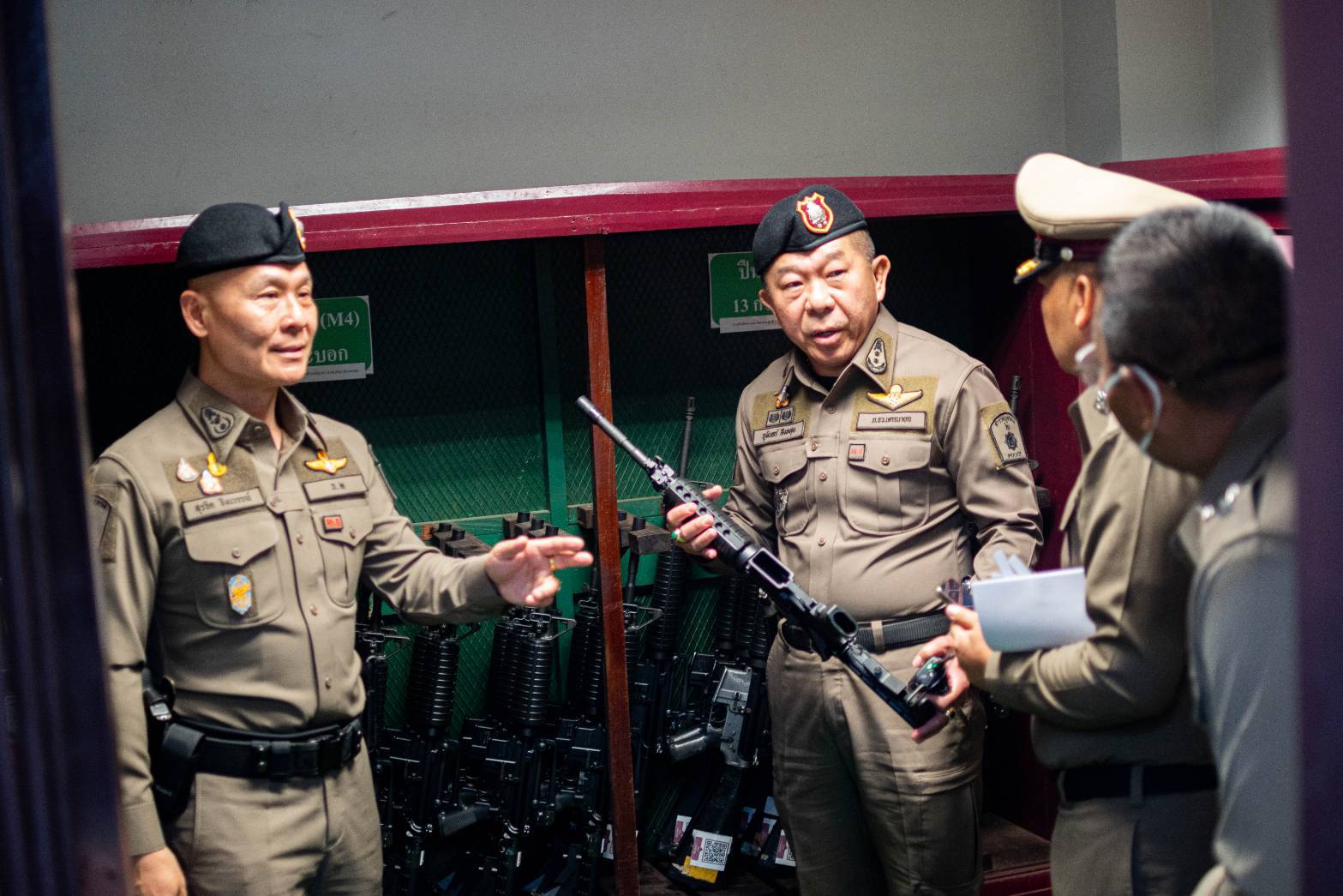 เจ้าหน้าที่ตำรวจสถานีตำรวจภูธรเมืองนครนายกให้การต้อนรับ ในการเดินทางมาในครั้งนี้ได้ทำการสุ่มตรวจการดำเนินโครงการและแก้ไขปัญหาในพื้นที่ของ สถ.เมืองนครนายก ตรวจที่ห้องเก็บคลังอาวุธ ปัญหาวัยรุ่นมั่วสุมขับรถจักยานยนต์เสียงดัง บริเวณสะพานวัดเขานางบวช และถนน ทล.3239 ตำบลหินตั้ง - ตำบลศรีนาวา ตำบลนครนายก อำเภอเมือง จังหวัดนครนายก ได้นำเสนอปัญหาและแนวทางแก้ไข ผลของการปฎิบัติให้ พลตำรวจตรี สุรจิต ชิงนวรรณ์ รองผู้บัญชาการตำรวจภูธรภาค 2 พร้อมคณะตรวจทราบเช่นแผนและการออกตรวจกวดขันอย่างเข็มงวด การตรวจตราร้านซ่อม/แต่งรถ