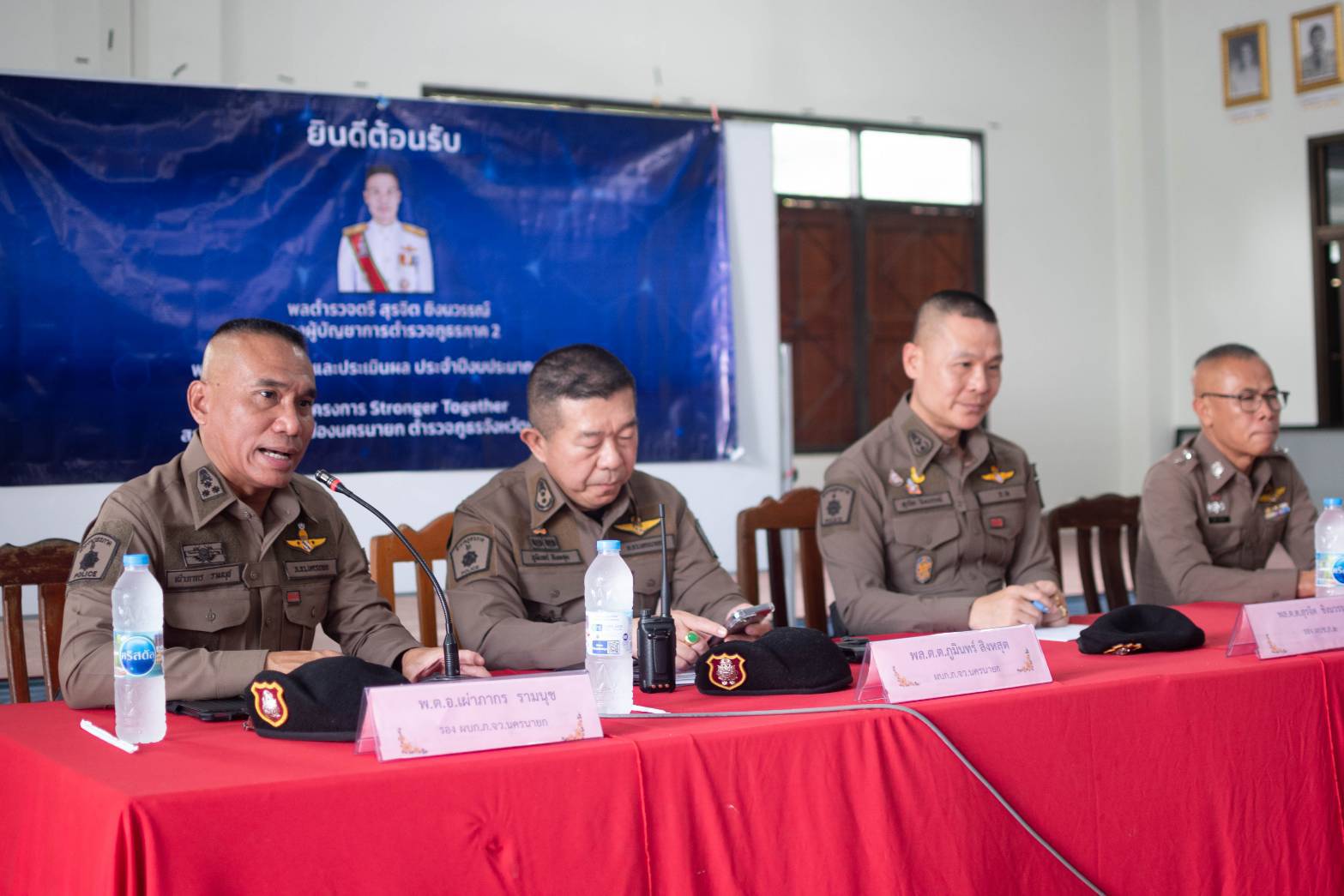 ที่ห้องประชุมตำรวจภูธรจังหวัดนครนายก ตำบลนครนายก อำเภอเมือง จังหวัดนครนายก พลตำรวจตรี สุรจิต ชิงนวรรณ์ รองผู้บัญชาการตำรวจภูธรภาค 2 พร้อมคณะตรวจและประเมินผล ประจำปี 2566 ได้เดินทางมาตรวจโครงการ Stronger Together ตำรวจภูธรจังหวัดนครนายก สถานีตำรวจภูธรเมืองนครนายกโดยมีพล.ต.ต.ภูมินทร์ สิงหสุต ผู้บังคับการตำรวจภูธรจังหวัดนครนายก พ.ต.อ.เผ่าภากร รามนุช รองผู้บังคับการตำรวจภูธรจังหวัดนครนายก พ.ต.อ.ชนินทร์ เดชชีวะ ผกก.กก.สส.ภ.จว.นครนายก พ.ต.อ.สง่า ทางธรรม ผู้กำกับสถานีเมืองนครนายก พร้อมคณะเจ้าหน้าที่ตำรวจภูธรจังหวัดนครนายก