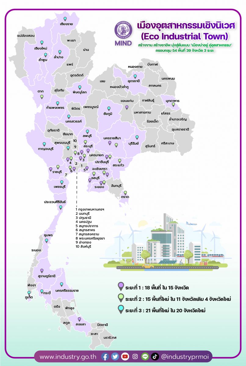 ก.อุตฯประกาศพื้นที่เมืองอุตฯเชิงนิเวศอีก เป็นระยะที่3กำหนด21พื้นที่20จังหวัดใหม่