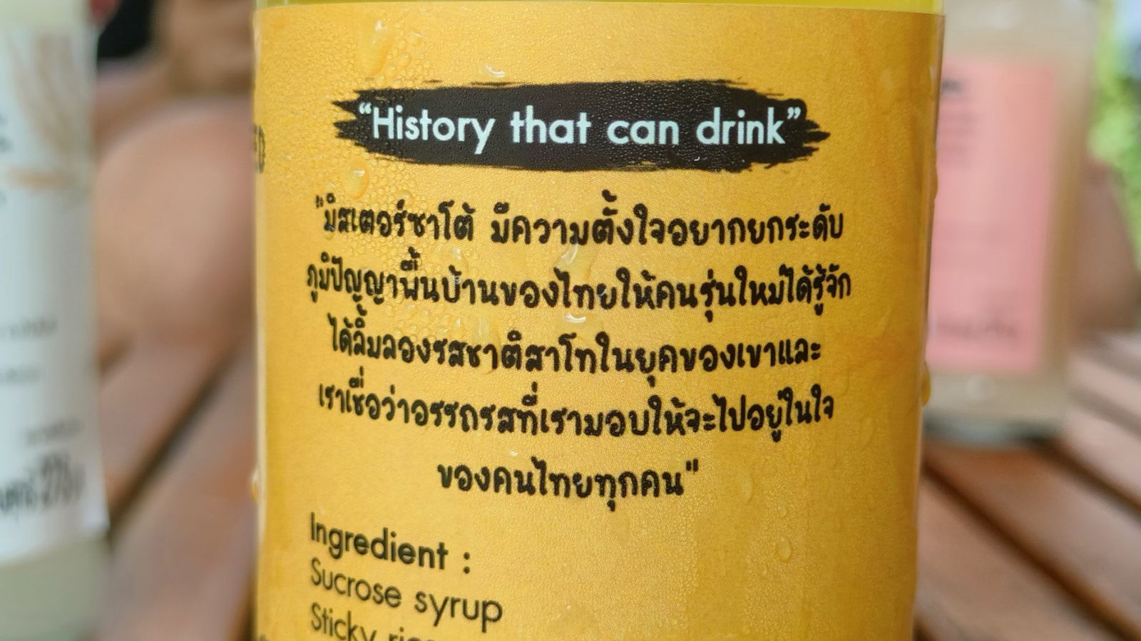 และกล่าวต่อว่า สำหรับที่มาของแบรนด์สินค้ามิสเตอร์ซาโต “MR.SATO” ที่ได้เตรียมการผลิตเอาไว้นั้น เพื่อต้องการตั้งชื่อให้คนทั้งโลกได้รู้จักคำว่า “สาโท” ไทย ที่คนได้เห็นแล้วอ่านออกมาว่า “นายสาโท” ขณะที่ในภาษาญี่ปุ่นนั้นเรียกน้ำตาลว่าซาโต ซึ่งเป็นวัตถุดิบหนึ่งที่เรานำมาใช้ทำสาโท ทั้งยังมีแรงบันดาลใจจากที่ในอดีตตนเองได้เคยไปเรียนที่ญี่ปุ่น และพบว่าที่ญี่ปุ่นนั้นมีสุราที่หลากหลายในหมู่บ้านหรือสุราชุมชนในหลายๆ จังหวัด จึงได้นำคำว่ามิสเตอร์มารวมกับคำญี่ปุ่น คือ ซาโต และแปลเป็นภาษาไทยว่านายสาโท จึงเป็นสตอรี่ที่เราสร้างขึ้นมา และอยากให้ “นายสาโท” นี้เป็นที่รู้จักไปในระดับโลกด้วย