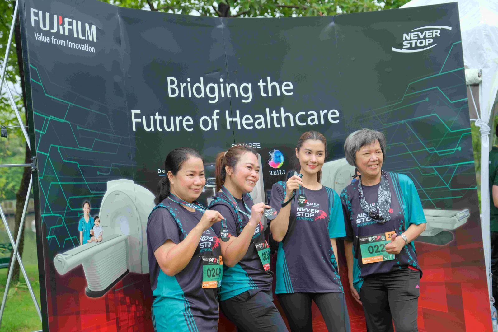 การจัดงาน FUJIFILM NEVER STOP Running 2023 นับเป็นการตอกย้ำพันธกิจของฟูจิฟิล์มในการพัฒนานวัตกรรมและโซลูชันทางการแพทย์ล้ำสมัยเพื่อสร้างเสริมสุขภาพที่ดีขึ้นให้คนในสังคม มร. โซ มารูโอะ กรรมการผู้จัดการ บริษัท ฟูจิฟิล์ม (ประเทศไทย) จำกัด เผยถึงความสำเร็จในการจัดงานการกุศลและการตอบรับอย่างดีเยี่ยมจากผู้เข้าร่วม โดยกล่าวว่า “เรายินดีเป็นอย่างยิ่งที่ได้จัดงาน FUJIFILM NEVER STOP Running 2023 เพื่อส่งเสริมสังคมสุขภาพดีพร้อมส่งมอบรายได้โดยไม่หักค่าใช้จ่ายให้แก่มูลนิธิแพทย์อาสาสมเด็จพระศรีนครินทราบรมราชชนนี (พอ.สว.) เป็นจำนวนทั้งสิ้น 587,800 บาท เพื่อสนับสนุนการทำงานอย่างทุ่มเทของบุคลากรทางการแพทย์ในการเดินทางออกตรวจสุขภาพให้แก่ผู้คนในถิ่นทุรกันดาร เราภาคภูมิใจที่ได้ร่วมเป็นส่วนหนึ่งในการช่วยเหลือสังคมไทย” นอกจากนี้ กิจกรรมในครั้งนี้ยังส่งเสริมการสร้างความตระหนักรู้เกี่ยวกับความสำคัญของการตรวจสุขภาพเป็นประจำเพื่อเพิ่มโอกาสในการพบโรคได้อย่างทันท่วงทีอีกด้วย