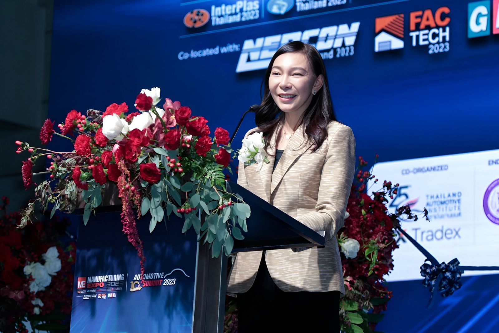 นางวรวรรณ ชิตอรุณ ผู้อำนวยการ สำนักงานเศรษฐกิจอุตสาหกรรม ประธานในพิธีเปิดงานมหกรรมเพื่ออุตสาหกรรมการผลิตและอุตสาหกรรมสนับสนุน แมนูแฟกเจอริ่ง เอ็กซ์โป 2023 และงาน ออโตโมทีฟ ซัมมิท 2023 “พลิกโฉมอนาคตอุตสาหกรรมยานยนต์ไทย” ที่เป็นความร่วมมือระหว่างสถาบันยานยนต์ กับ อาร์เอ็กซ์ เทรดเด็กซ์ ที่ได้จัดงานร่วมกันมาปีนี้เป็นปีที่ 10 และเป็นปีที่สถาบันยานยนต์ครบรอบปีที่ 25 ว่า การจัดงานในลักษณะ 8-in-1 Mega Event ที่อาร์เอ็กซ์ เทรดเด็กซ์ ได้นำอุตสาหกรรมการผลิตเฉพาะทาง 5 งาน พร้อมด้วยงานเพื่ออุตสาหกรรมสนับสนุนอีก 3 งานมาจัดแสดงรวมกันภายใต้มหกรรมเพื่ออุตสาหกรรมการผลิตและอุตสาหกรรมสนับสนุน หรือ “แมนูแฟกเจอริ่ง เอ็กซ์โป 2023” ในปีนี้ นับเป็นสัญญาณที่ดี เพราะขนาดของงานที่ใหญ่กว่าการจัดงานในปีก่อนที่จะเกิดสถานการณ์การแพร่ระบาดของโควิด-19 สะท้อนให้เห็นถึงความพร้อมของอุตสาหกรรมไทยทั้งในฝั่งผู้ผลิตและผู้นำเสนอเทคโนโลยี อีกทั้งความกระตือรือร้นของนักลงทุนต่างชาติที่มองเห็นโอกาสของธุรกิจด้วยการเข้าร่วมงานในครั้งนี้เป็นจำนวนมาก